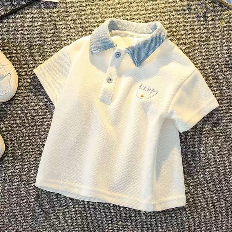 소년과 소녀를위한 한국 스타일 옷깃 폴로 셔츠 여름 새로운 반팔 티셔츠 어린이 잘 생긴 스트리트 탑