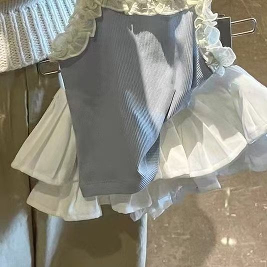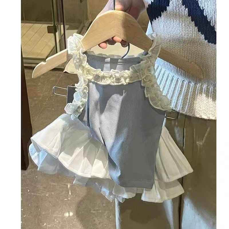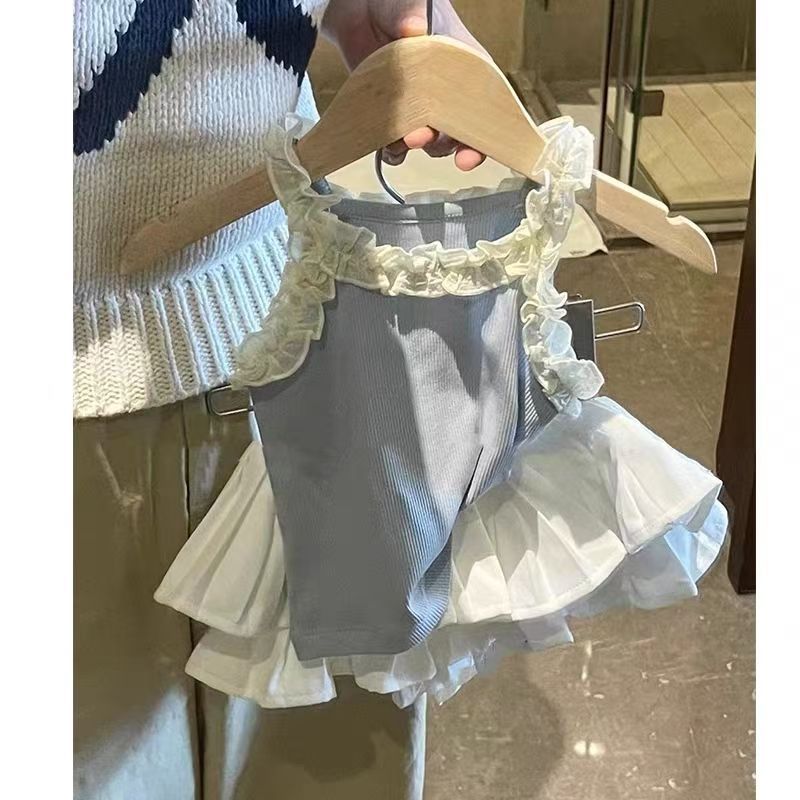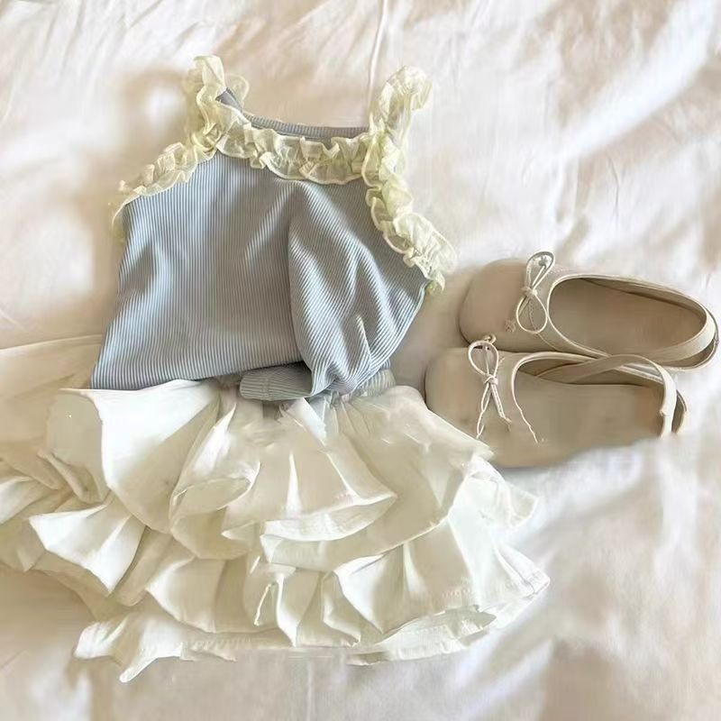 소녀의 여름 사이버 축하 레이스 조끼 세트 2025 여름 새로운 슈퍼 귀여운 어린이 슬링 소녀의 달콤한 케이크 스커트스토어 가기