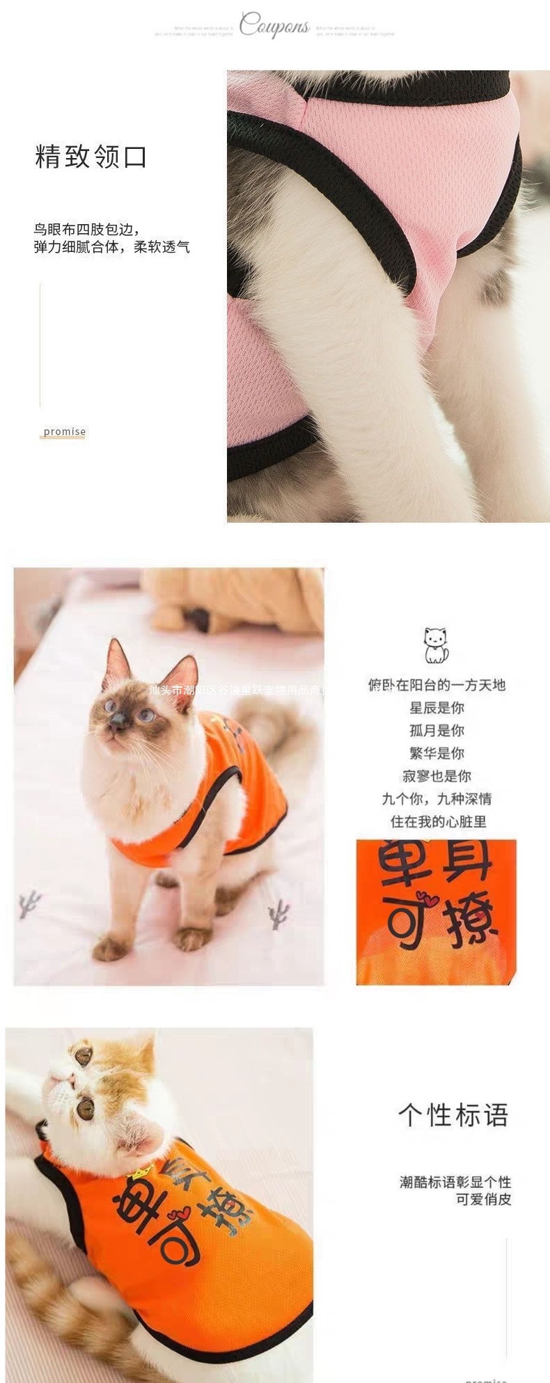 고양이 옷 여름 털갈이 방지 여름 개 조끼 통기성 고양이 파란색 고양이 귀여운 애완 동물 고양이 새끼 고양이 점프 애완 동물