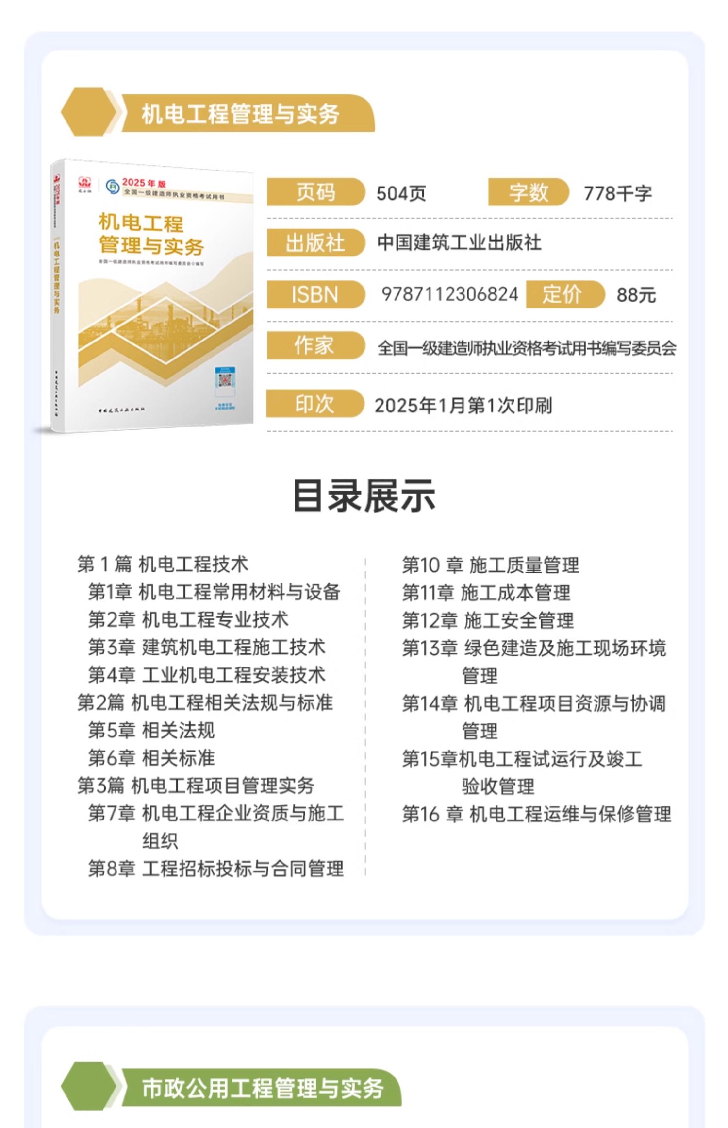 첫 번째 건설 2025 교과서 1 급 건설 엔지니어 시험장 건축시 전기 기계 고속도로 수자원 보존 및 수력 공공 세트스토어 가기