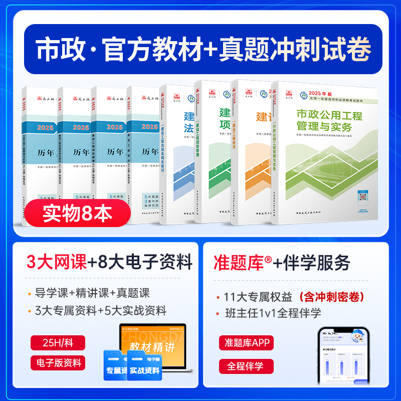 첫 번째 건설 2025 교과서 1 급 건설 엔지니어 시험장 건축시 전기 기계 고속도로 수자원 보존 및 수력 공공 세트