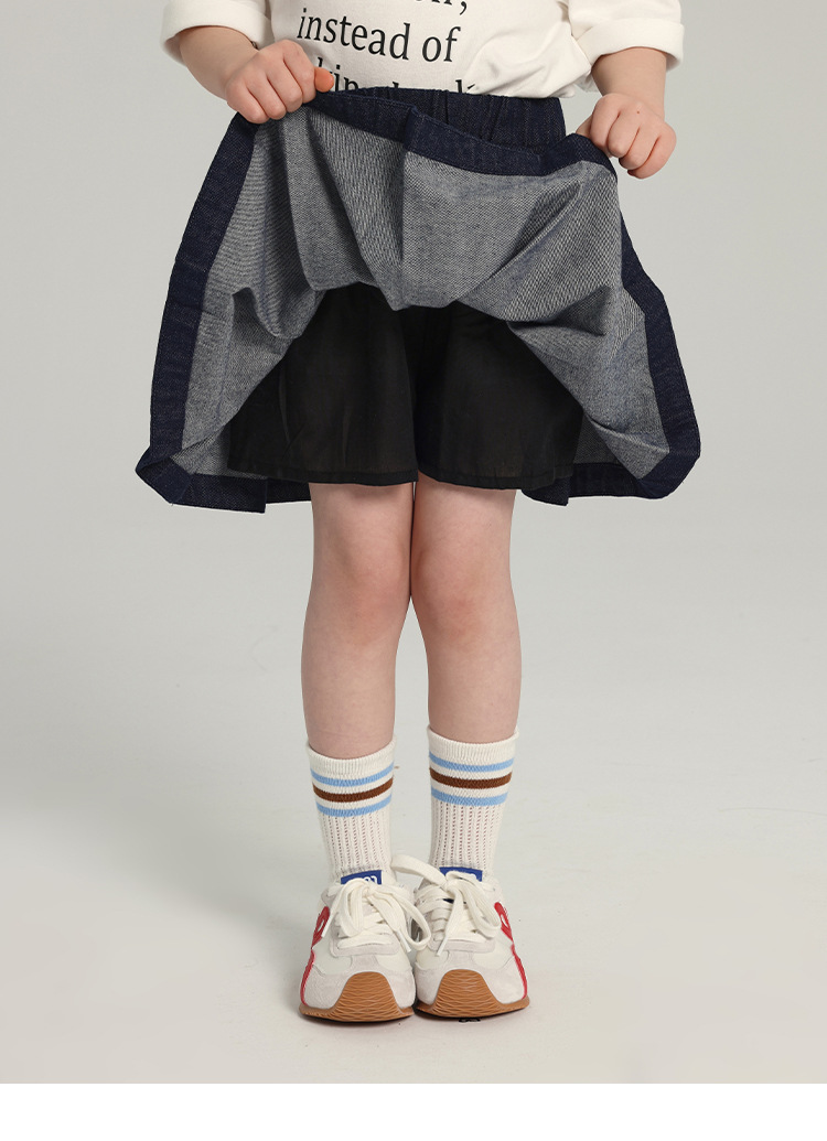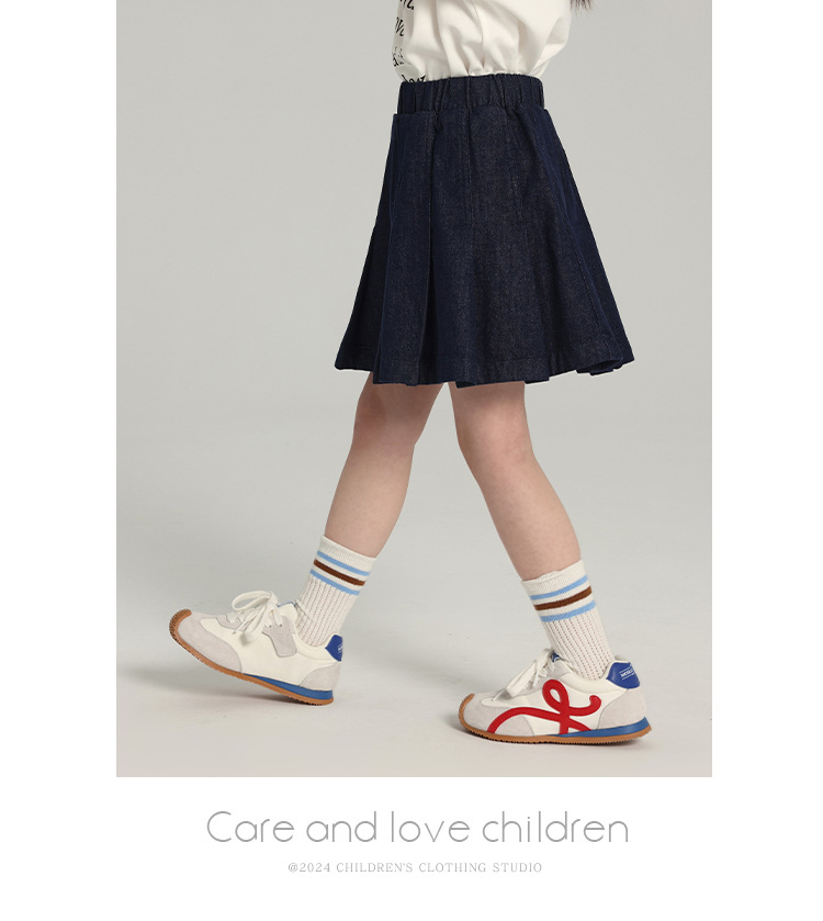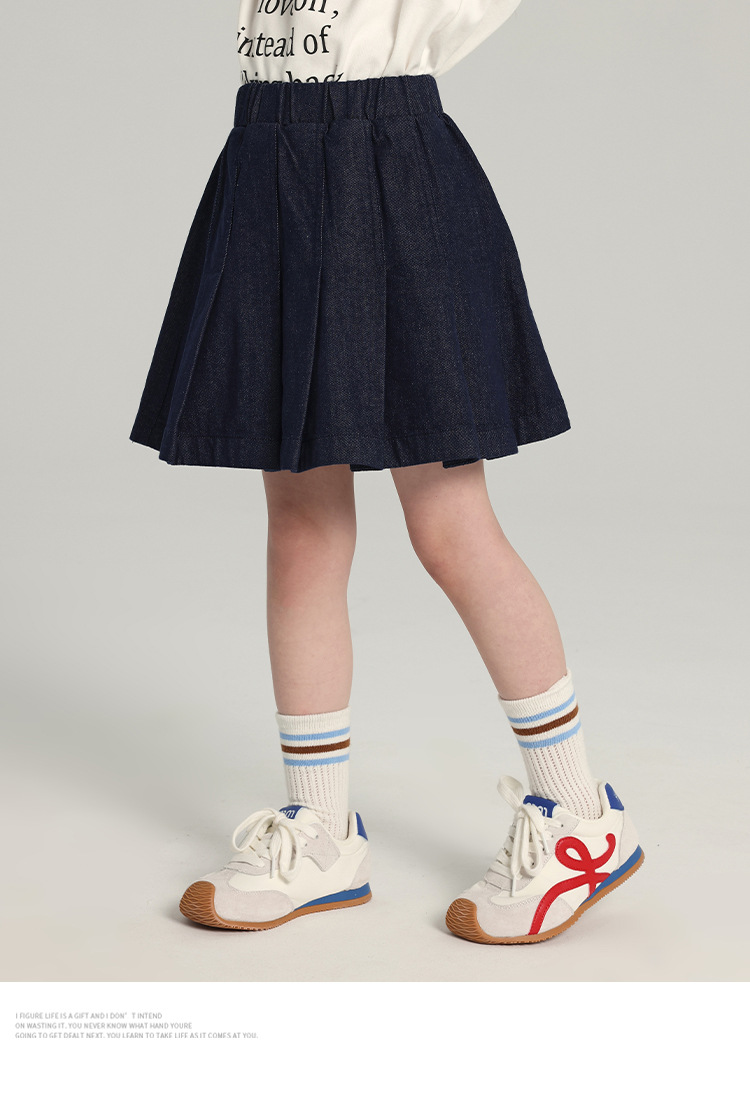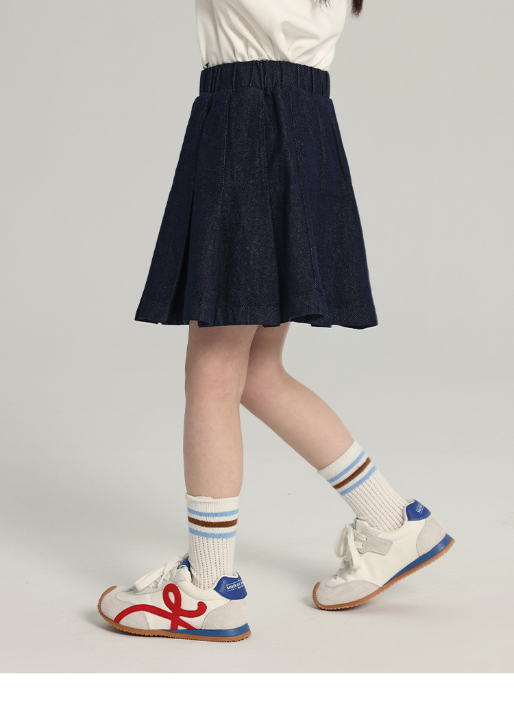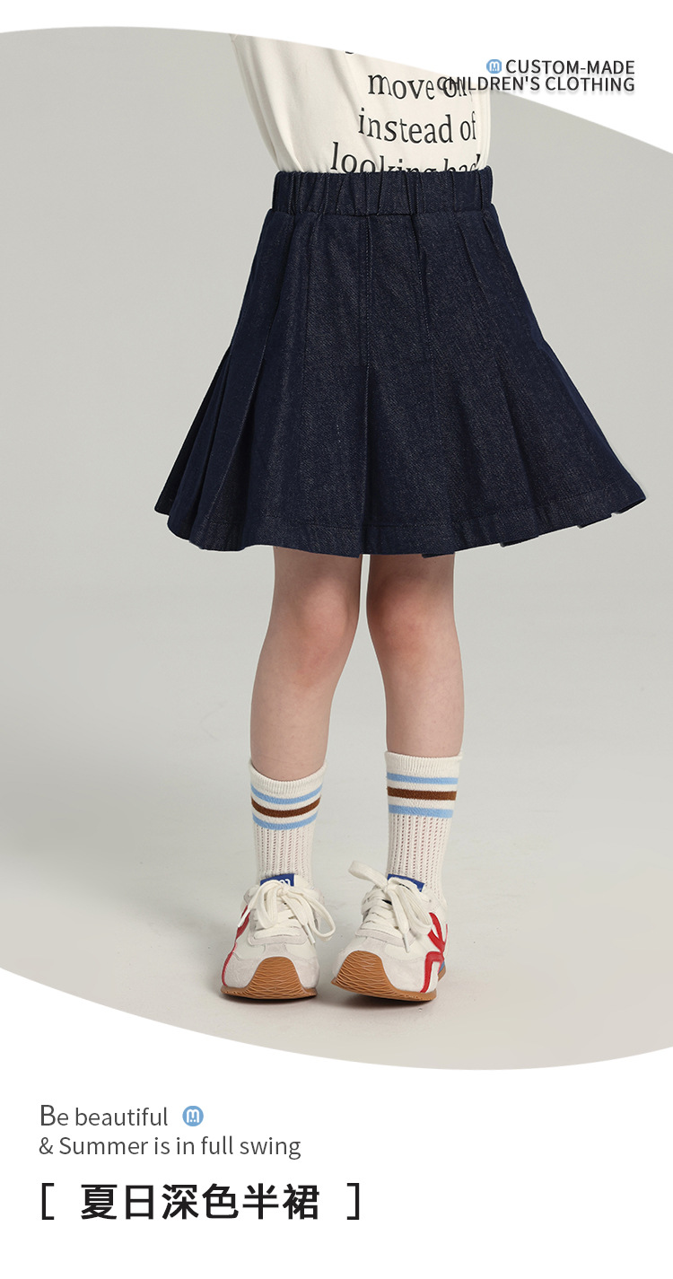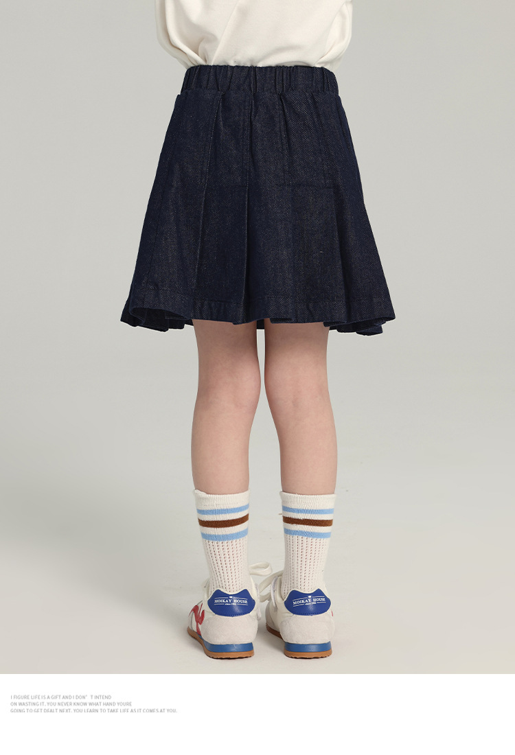 푸딩 하루 소녀의 단색 짧은 치마 2025 여름 새로운 어린이 올매치 데님 주름 치마스토어 가기