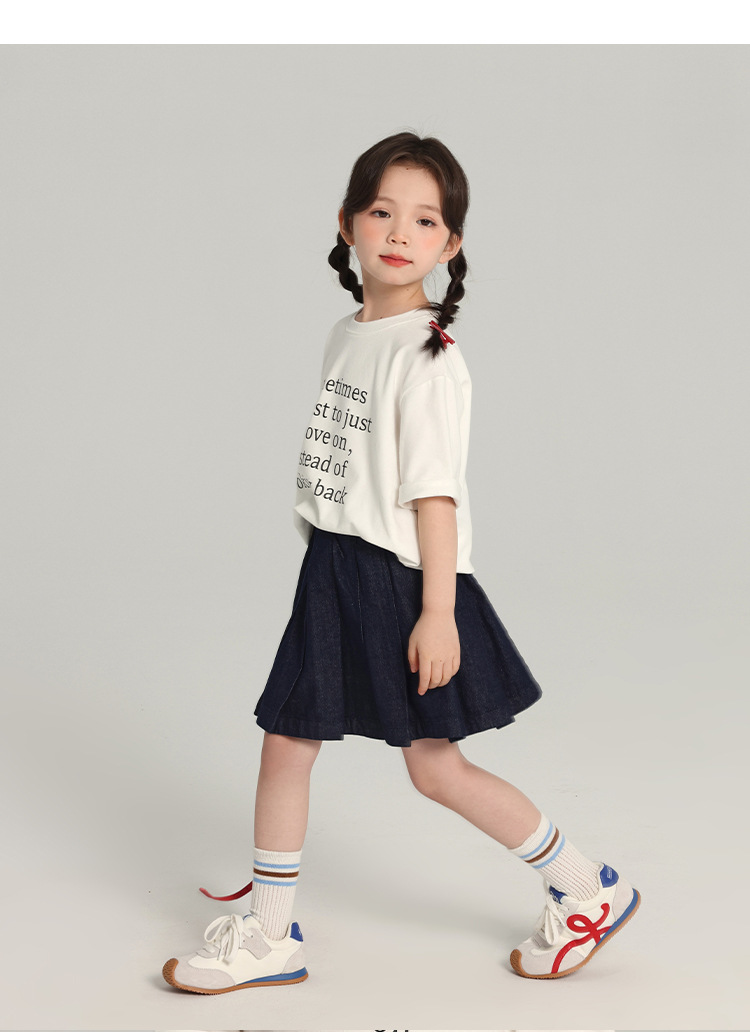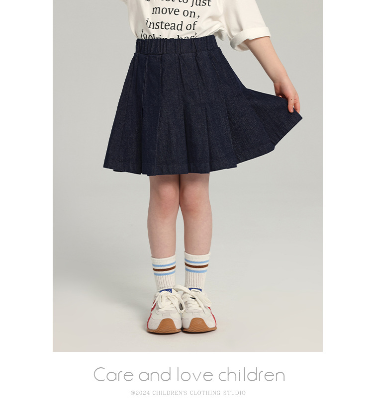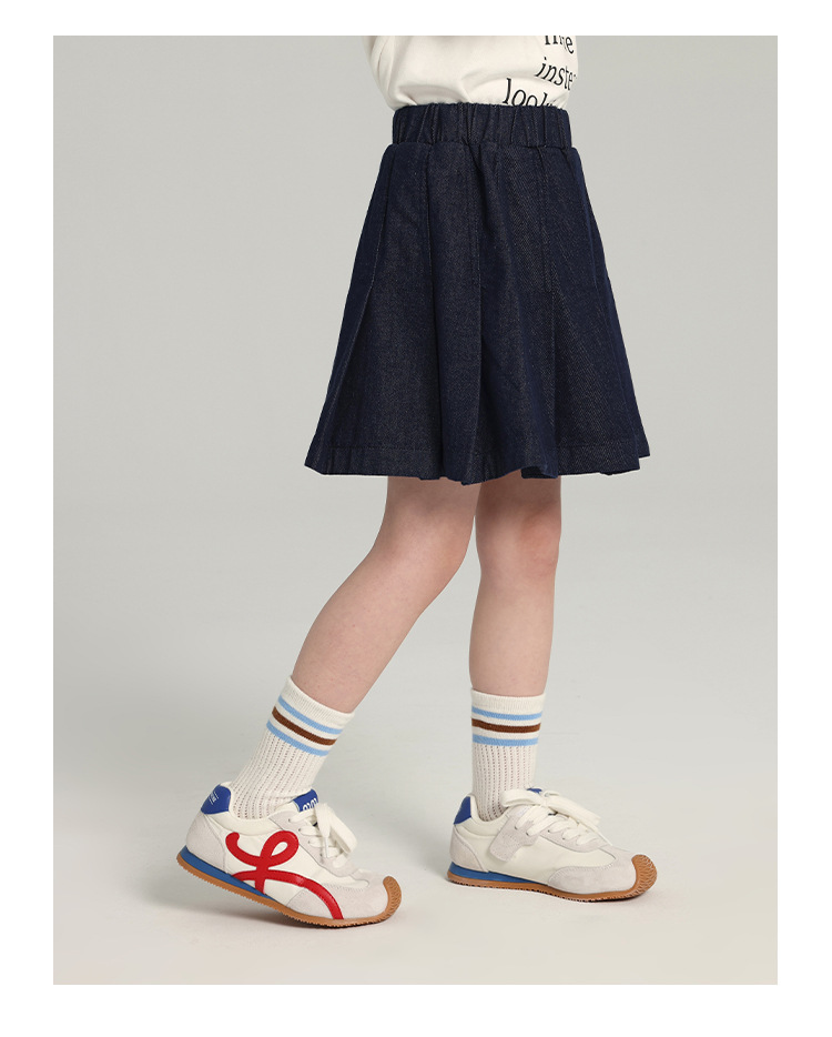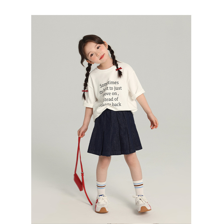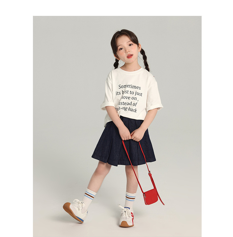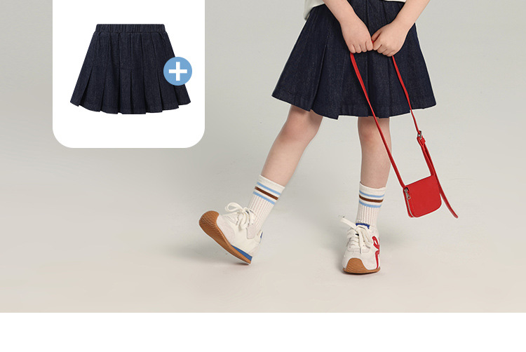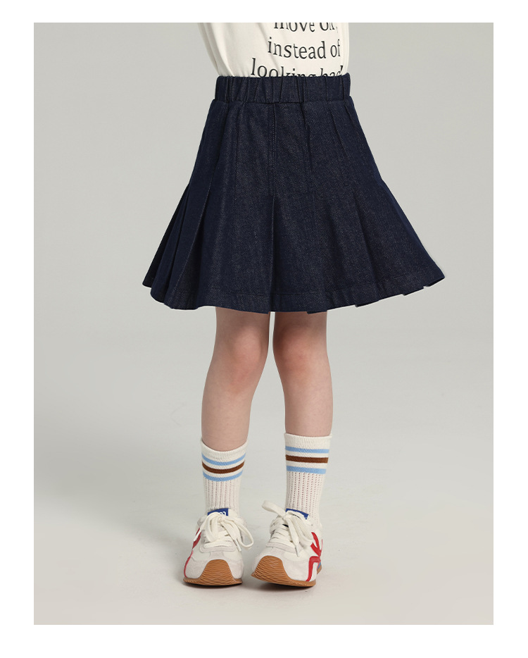 푸딩 하루 소녀의 단색 짧은 치마 2025 여름 새로운 어린이 올매치 데님 주름 치마스토어 가기