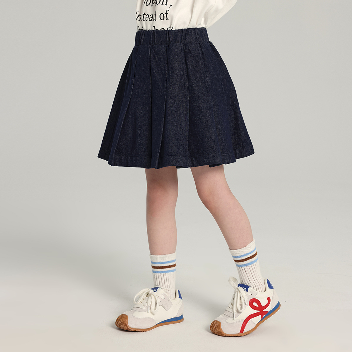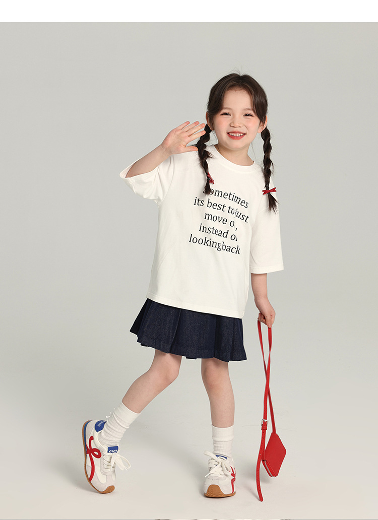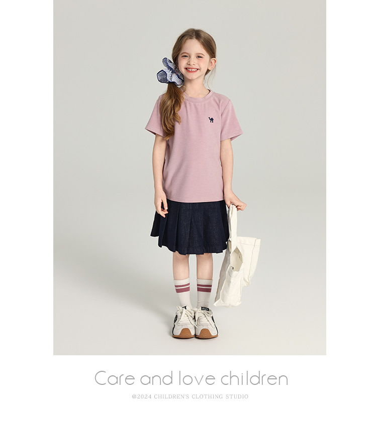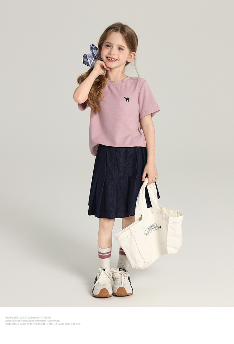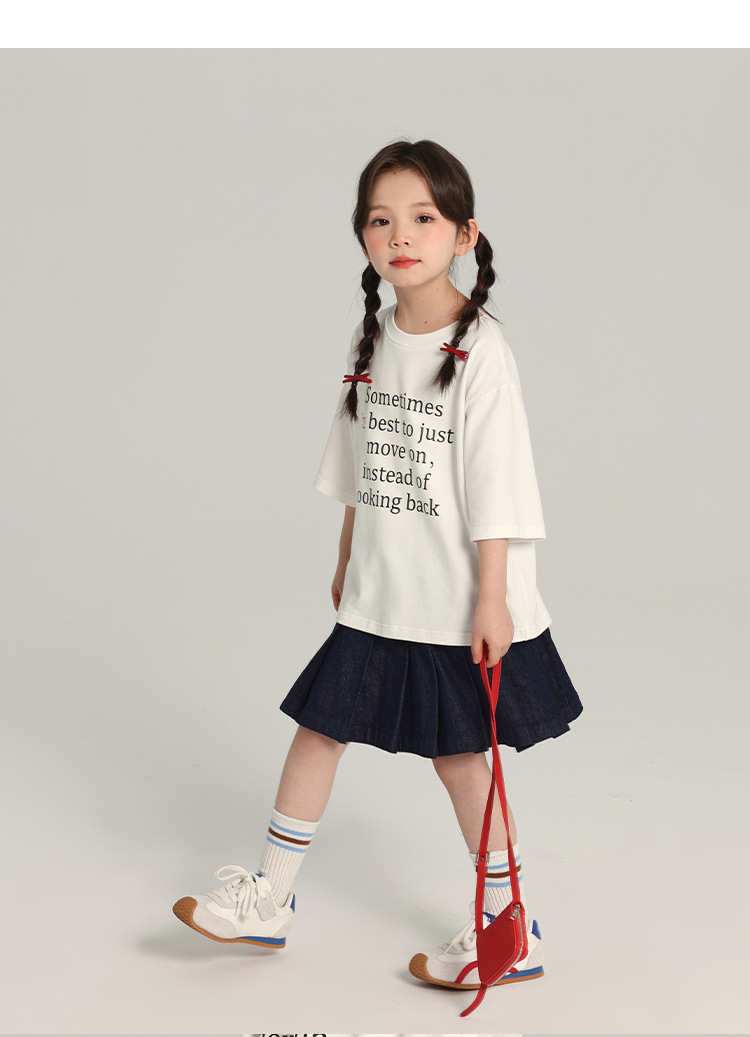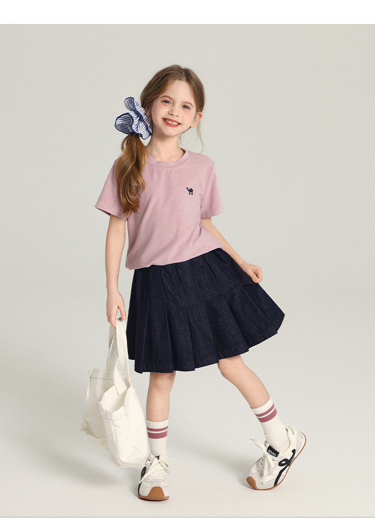 푸딩 하루 소녀의 단색 짧은 치마 2025 여름 새로운 어린이 올매치 데님 주름 치마스토어 가기
