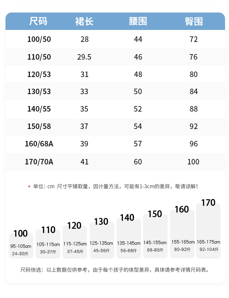• 사이즈 100의 권장 신장은 95-105cm입니다.