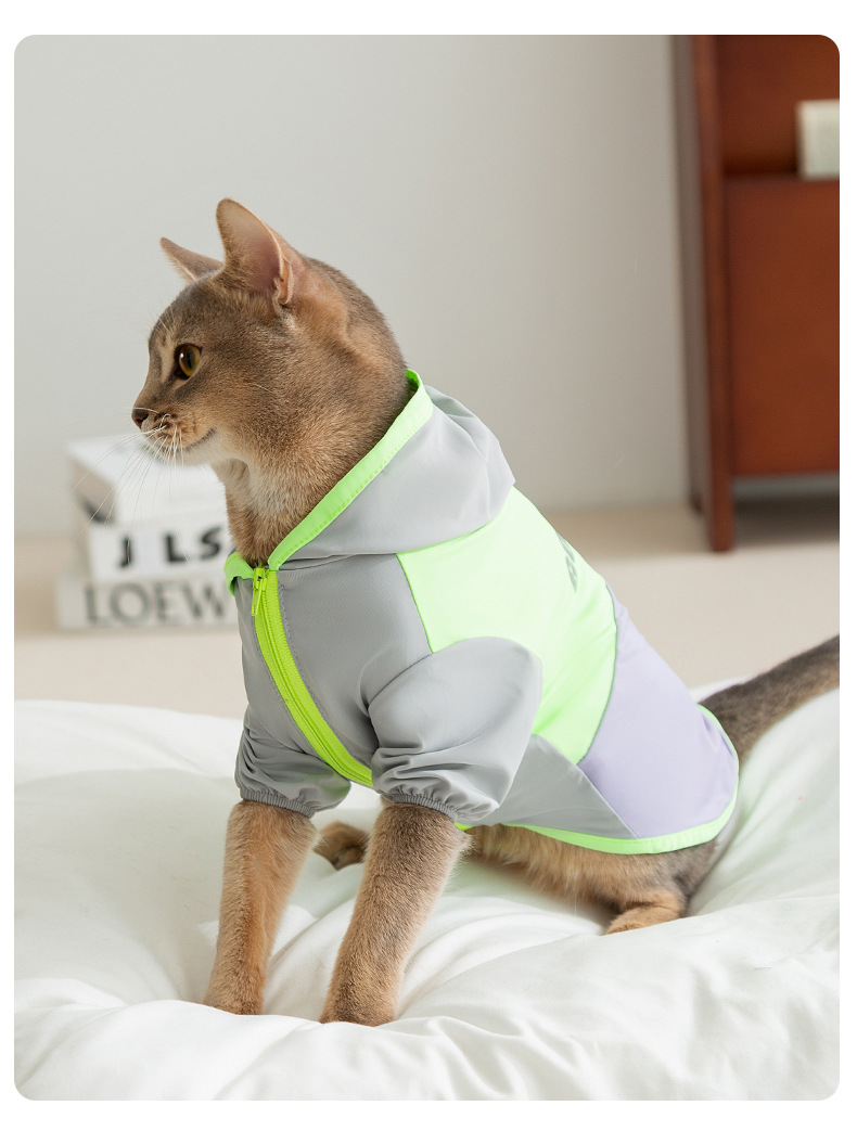 고양이 옷 봄과 여름 시원한 후드 견인 자외선 차단 의류 파란 고양이 털이없는 고양이 새끼 고양이 강아지 야외 고양이 옷스토어 가기