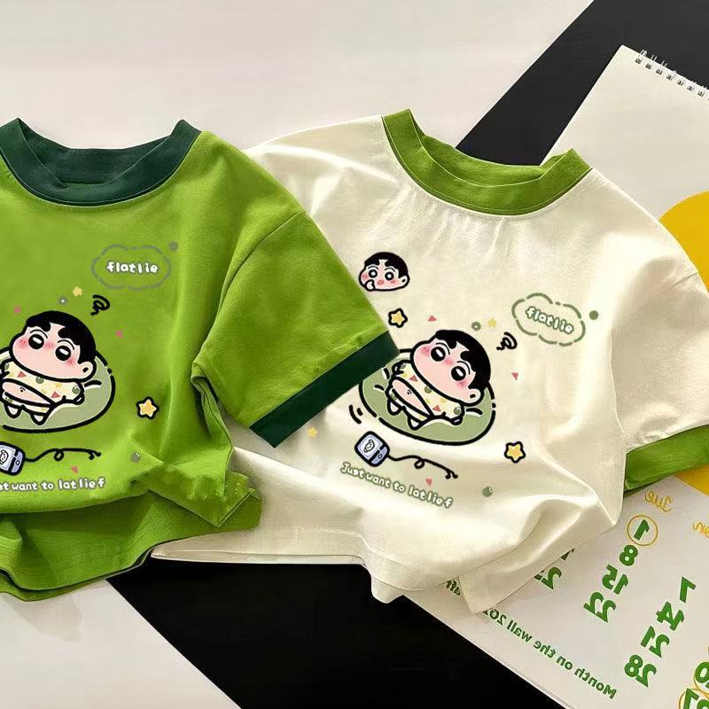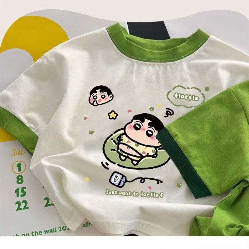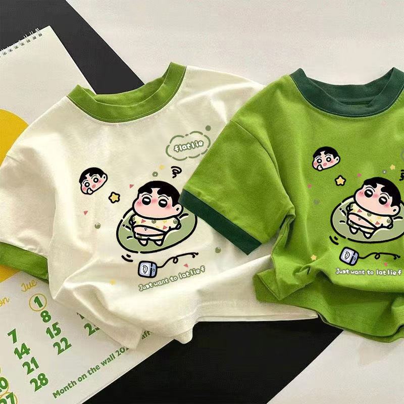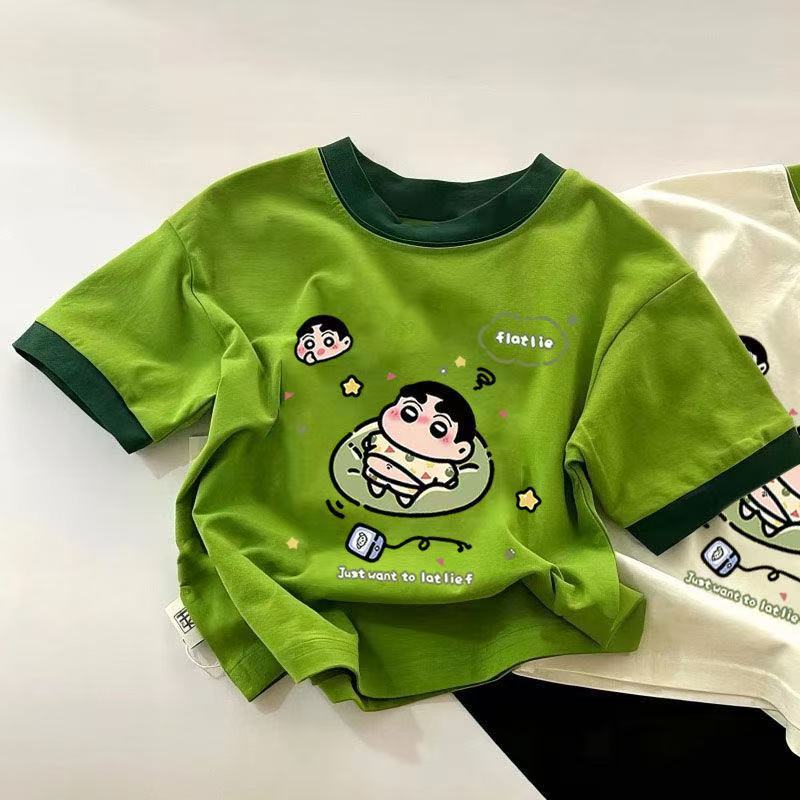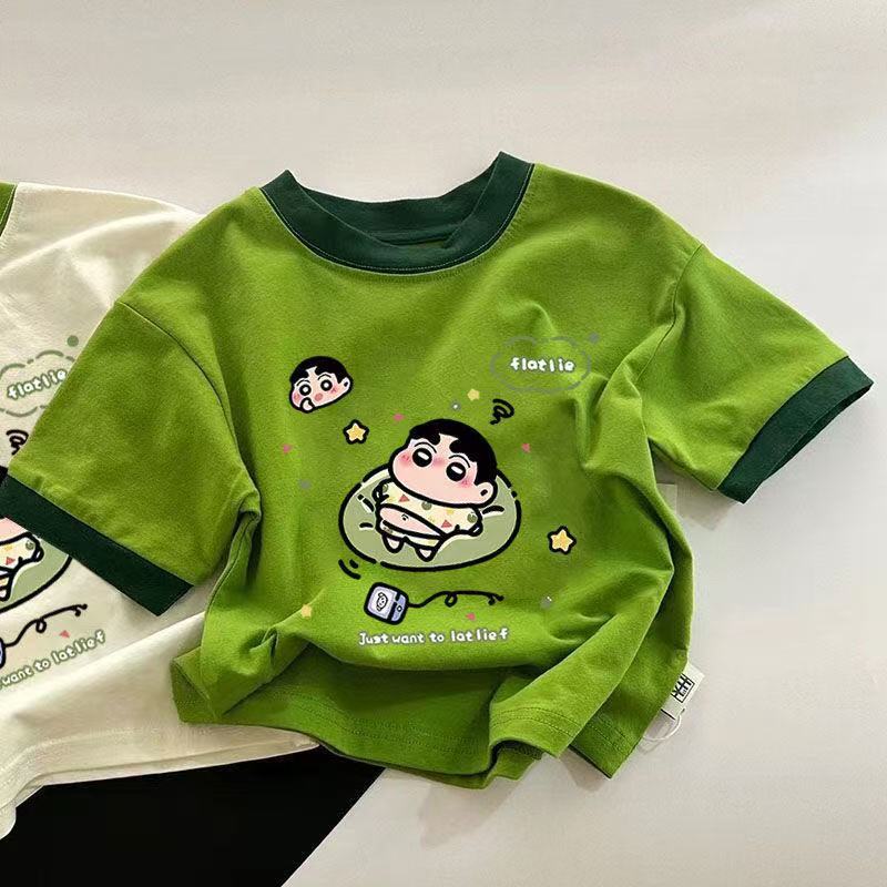 100 면 여름 새로운 만화 남녀 어린이 아기 크레용 신 새로운 반팔 티셔츠 탑 웨스턴 스타일 T
