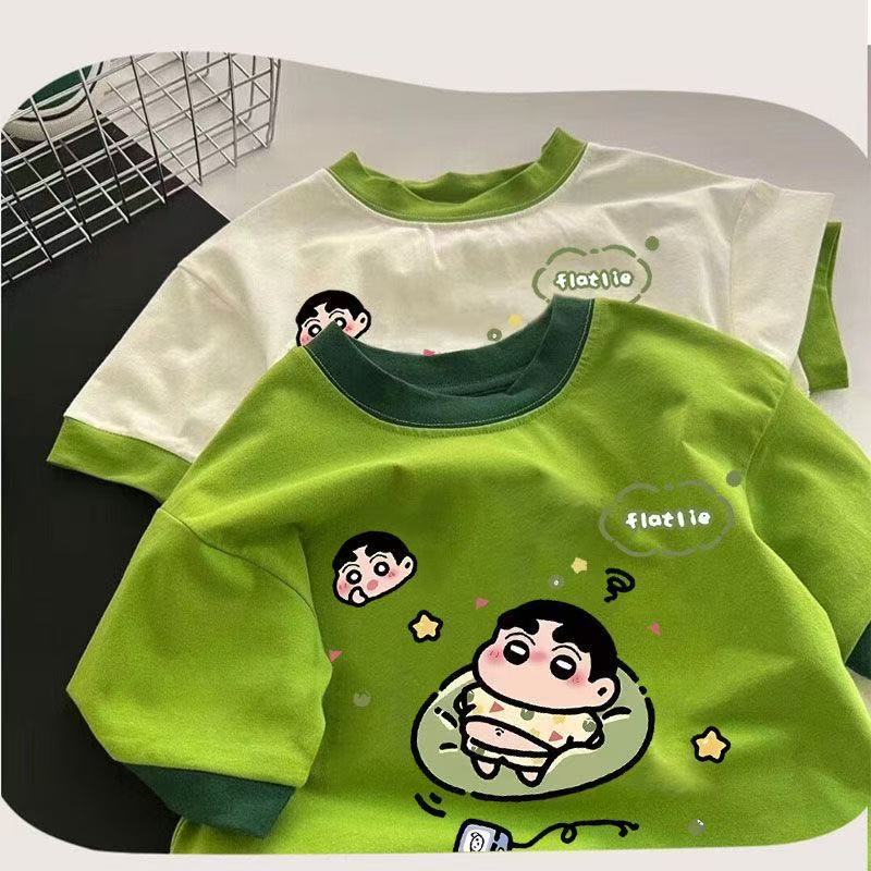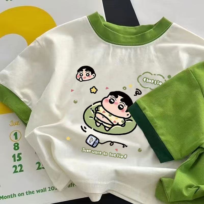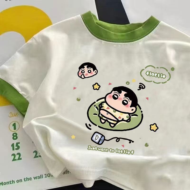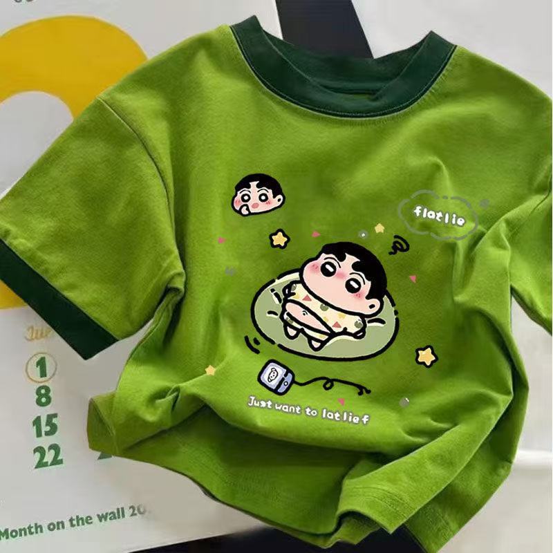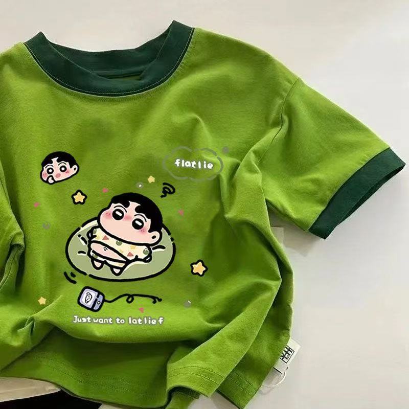100 면 여름 새로운 만화 남녀 어린이 아기 크레용 신 새로운 반팔 티셔츠 탑 웨스턴 스타일 T
