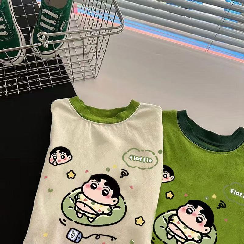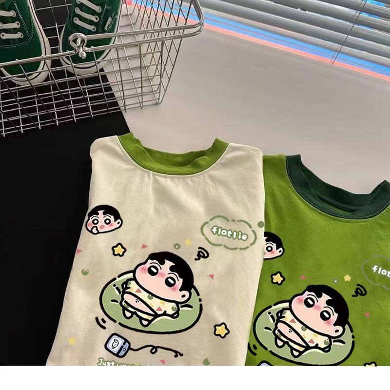 100 면 여름 새로운 만화 남녀 어린이 아기 크레용 신 새로운 반팔 티셔츠 탑 웨스턴 스타일 T스토어 가기