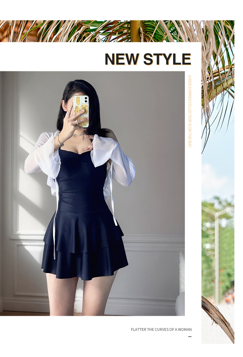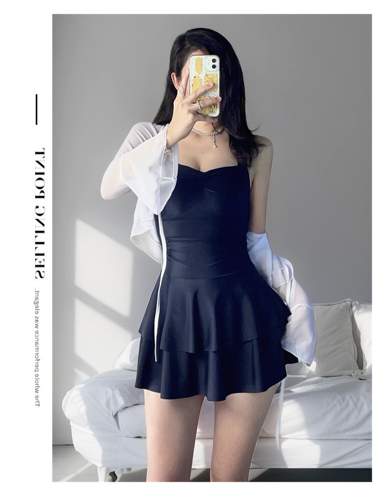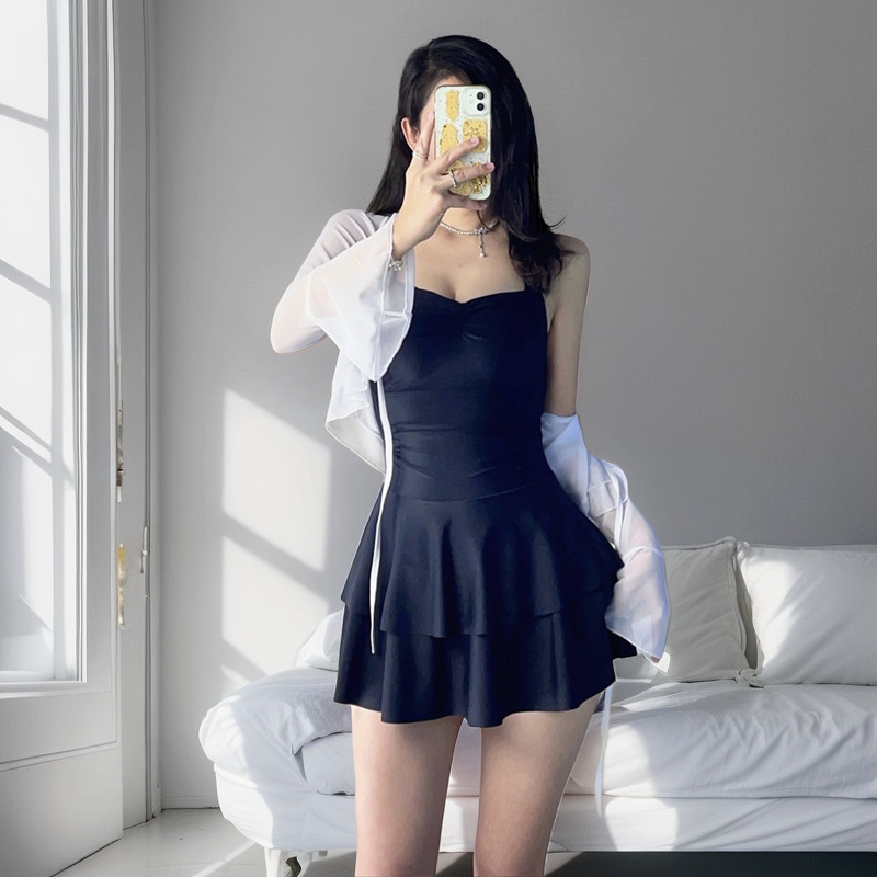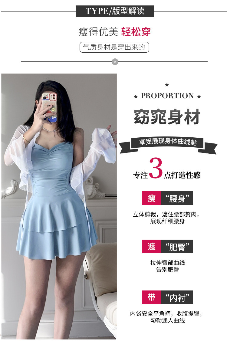 수영복 여성 스커트 원피스 보수적 슬리밍 한국 스타일 ins 스타일 핫 소녀 하이 엔드 작은 가슴 푸시 업 온천 수영복스토어 가기