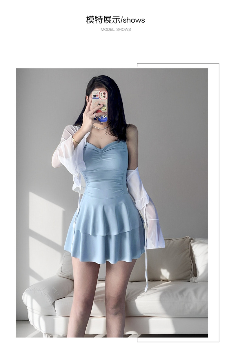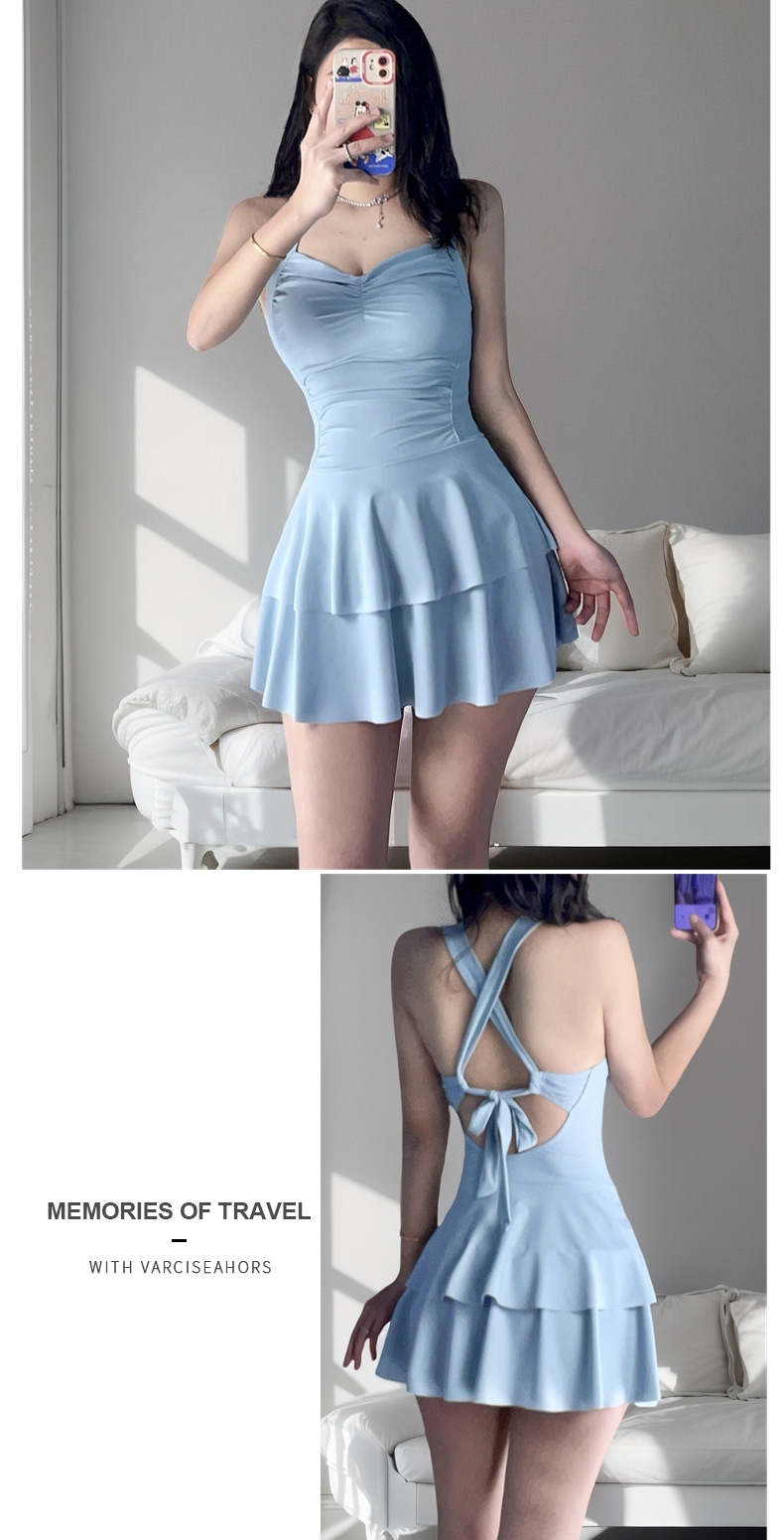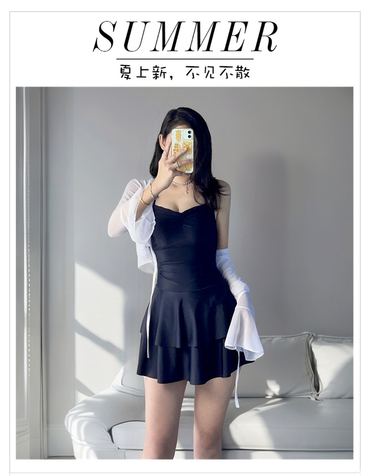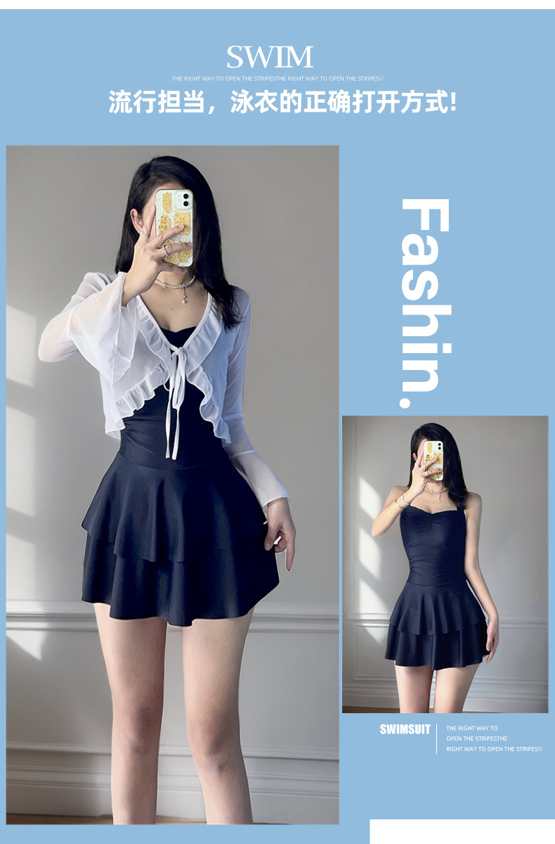 수영복 여성 스커트 원피스 보수적 슬리밍 한국 스타일 ins 스타일 핫 소녀 하이 엔드 작은 가슴 푸시 업 온천 수영복스토어 가기