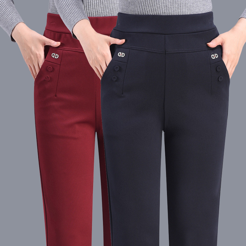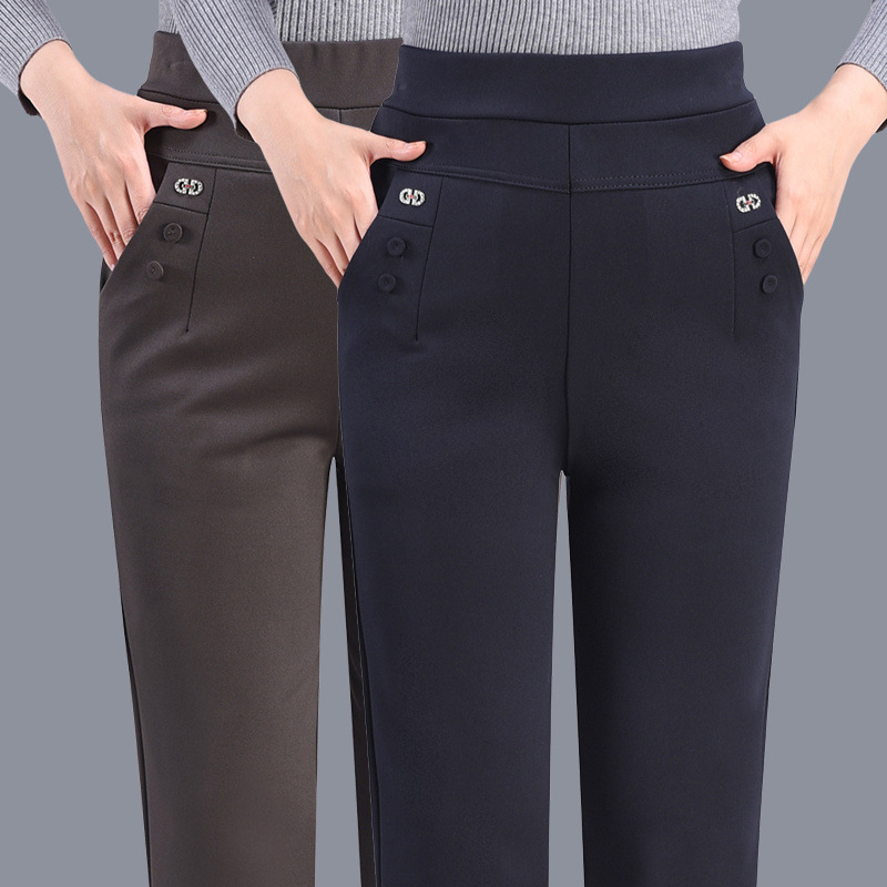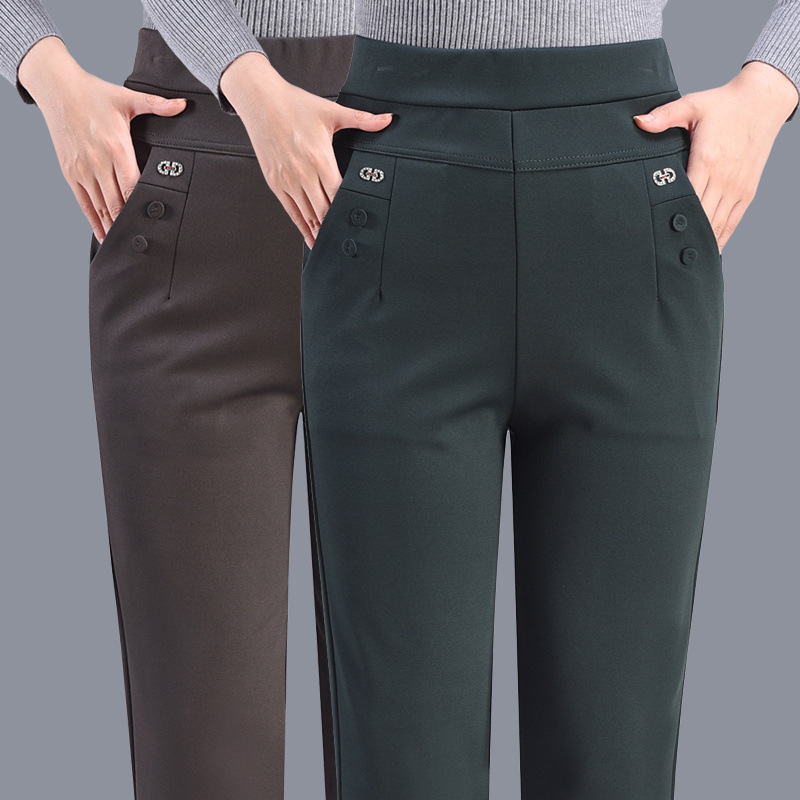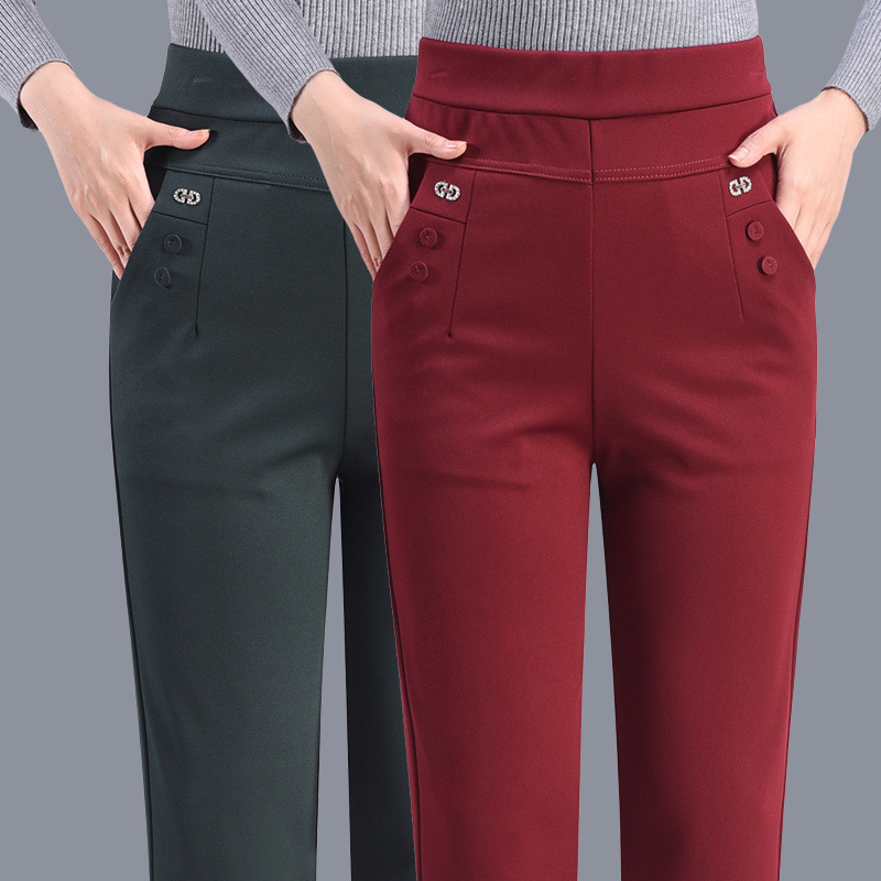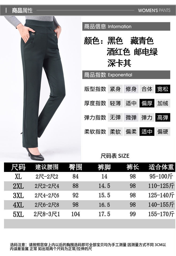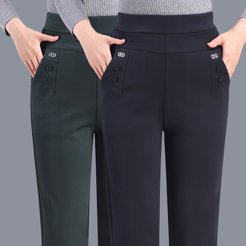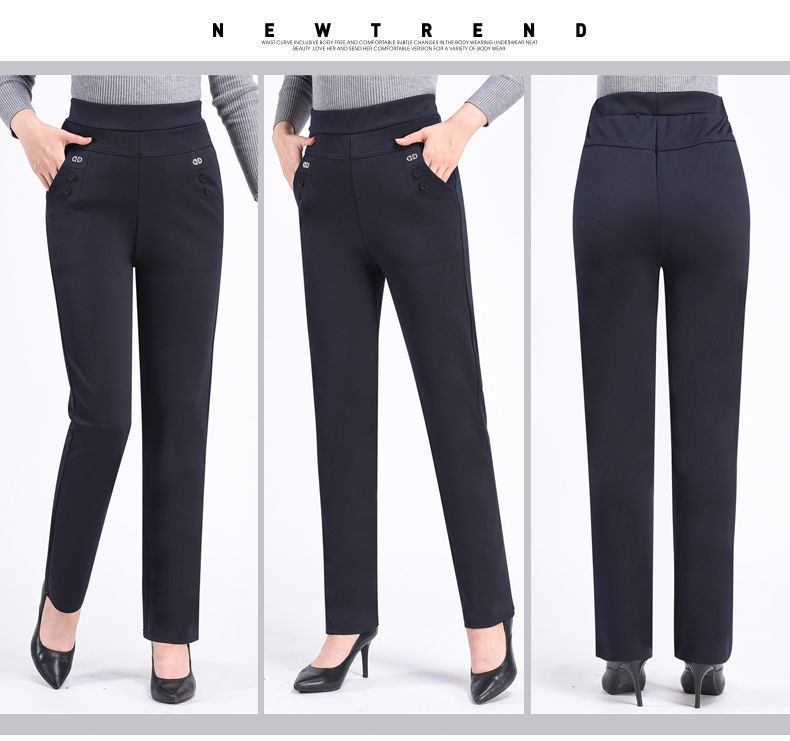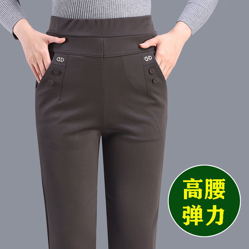 어머니의 바지 여성의 2025 봄과 가을 새로운 위 바지 슬림 핏 스트레이트 바지 중년 높은 허리 캐주얼 여성 바지스토어 가기