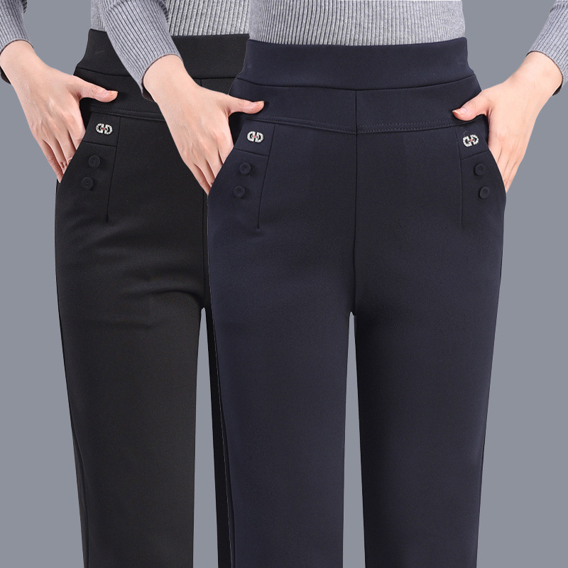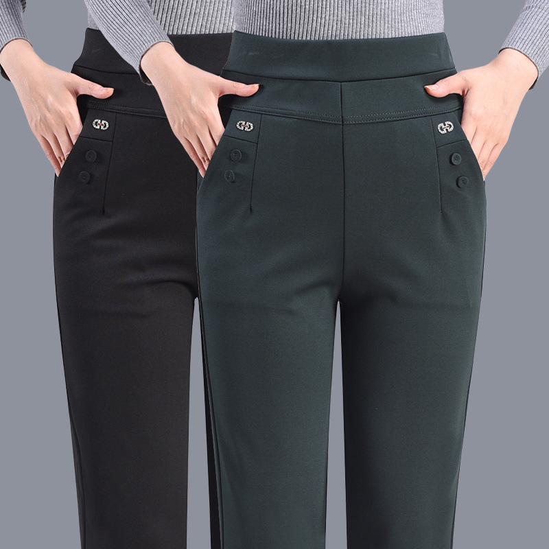 어머니의 바지 여성의 2025 봄과 가을 새로운 위 바지 슬림 핏 스트레이트 바지 중년 높은 허리 캐주얼 여성 바지