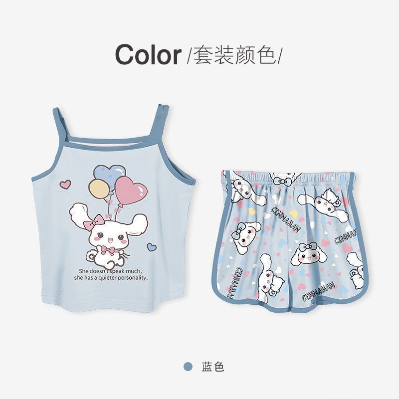 2025 아기 소녀를위한 얼음 실크 가정 옷 귀여운 만화 쿠로미 멜로디 계피 개 세련되고 세련된스토어 가기