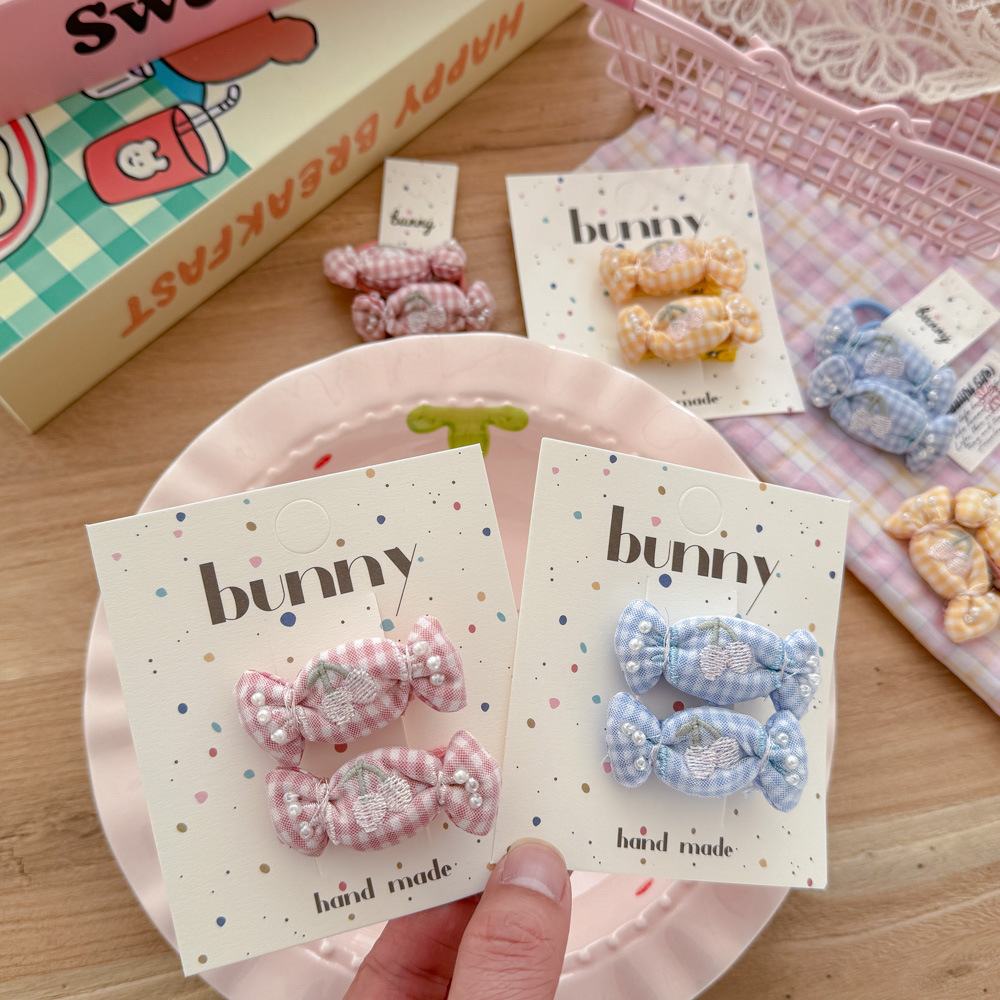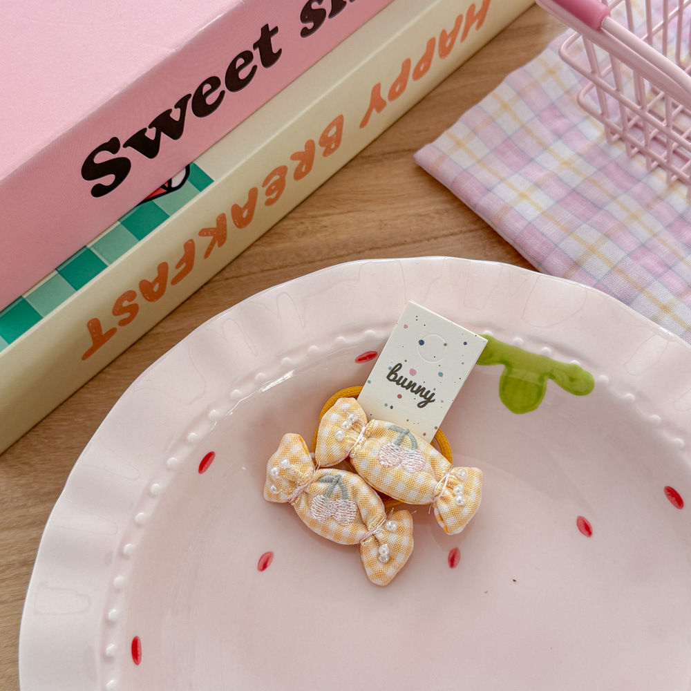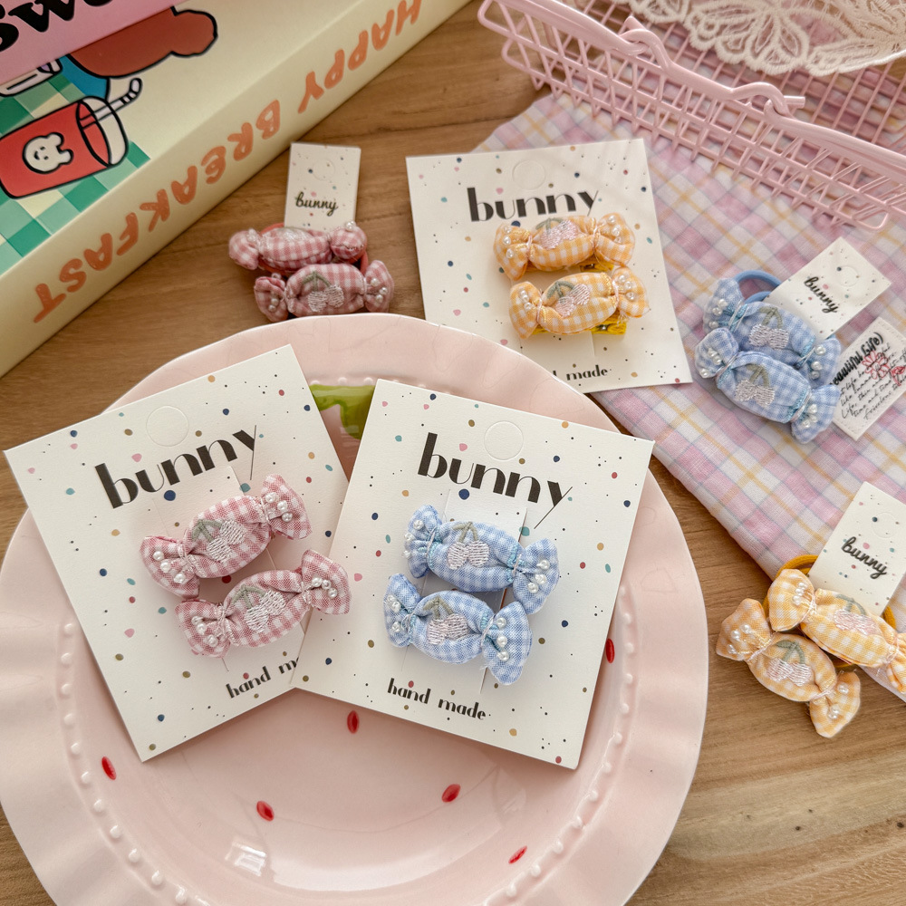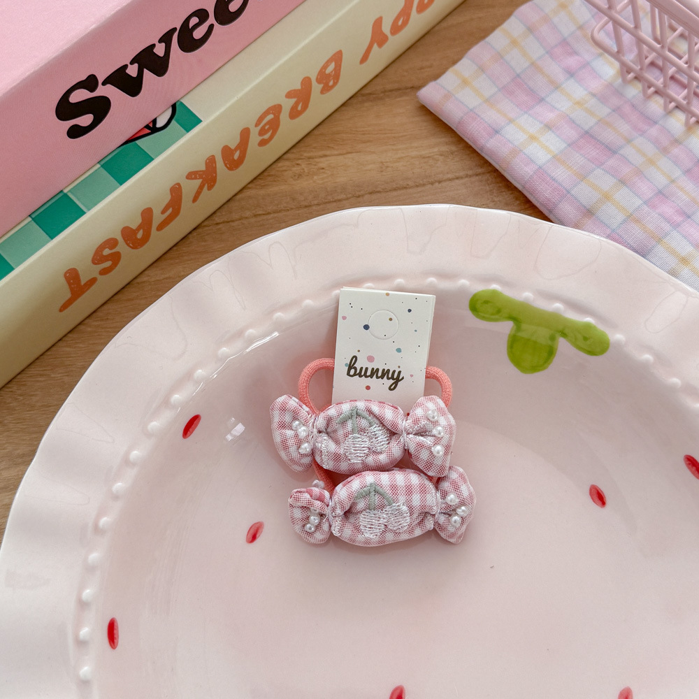 새로운 한국 스타일 격자 무늬 캔디 패브릭 헤어 카드 머리 반지 어린이 헤어 카드 귀여운 달콤한 체리 헤어 로프 아기 헤어 액세서리