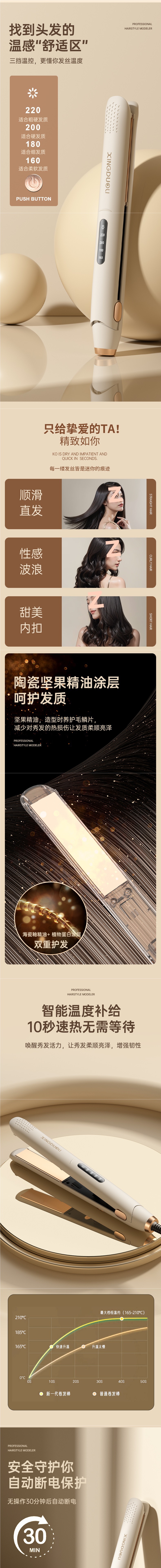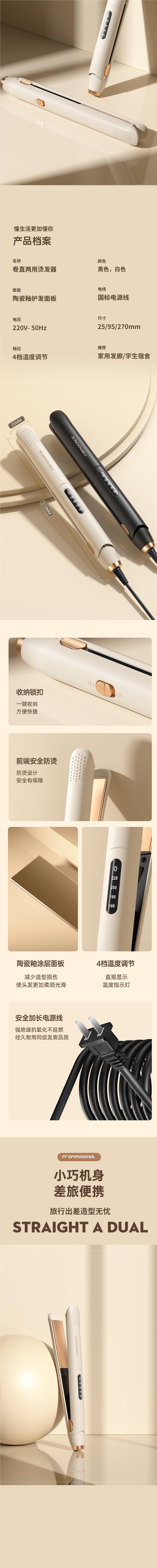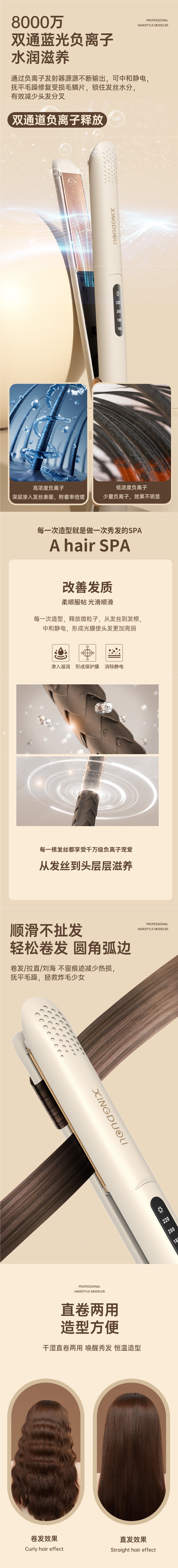 • 아이보리 화이트 [상위 버전] 98.0million 음이온 - 4단계 온도 조절 - 스트레이트 및 컬링 이중 사용 - 오래 지속되는 스타일링 - 10초 빠른 가열 - 지능형 전원 끄기