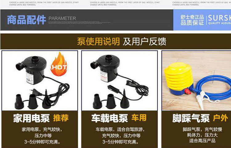 • 블루 + 가정용 및 차량용 전동 펌프(베개 보관 가방 수리 키트 포함)