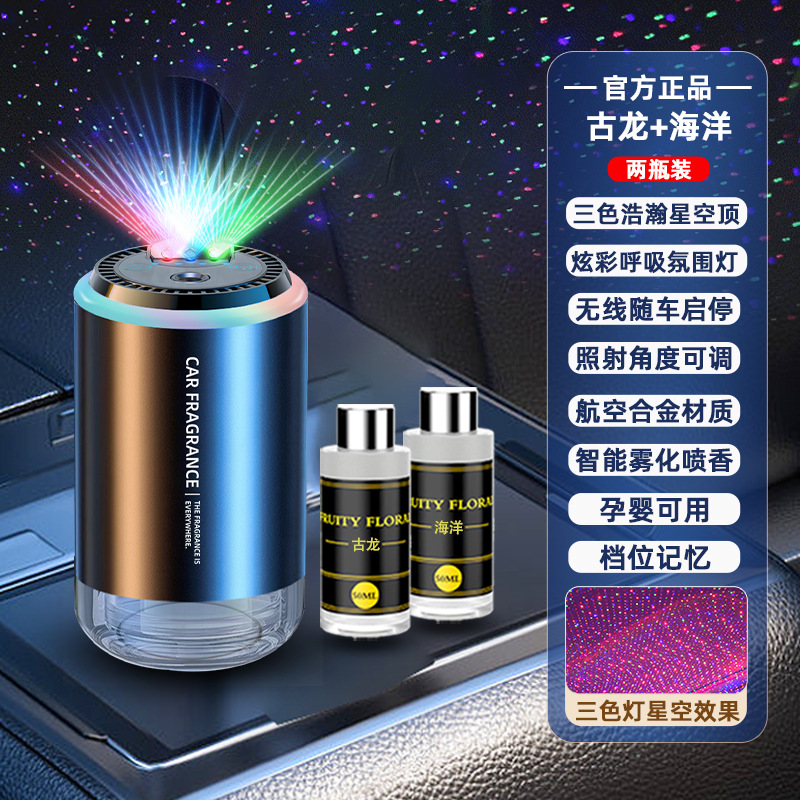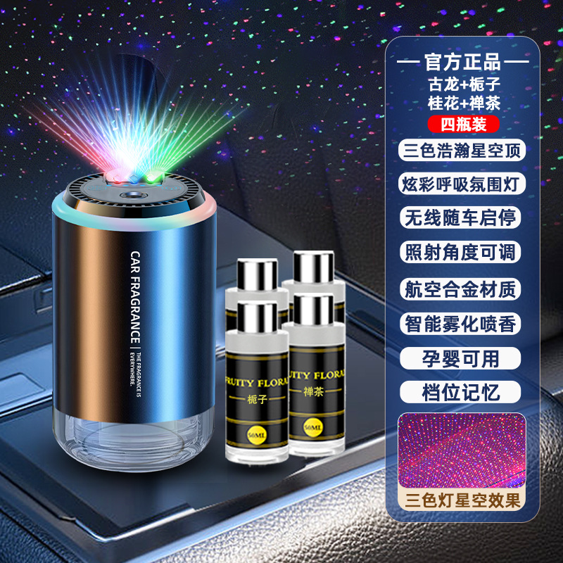• [쾰른 + 치자나무 + 젠차 + 계수나무] 3색 별하늘 천장 + 주변광 + 자동차 시동 및 정지 + 선물 상자 포장 | 아로마테라피 기계 1대 + 향수 4병