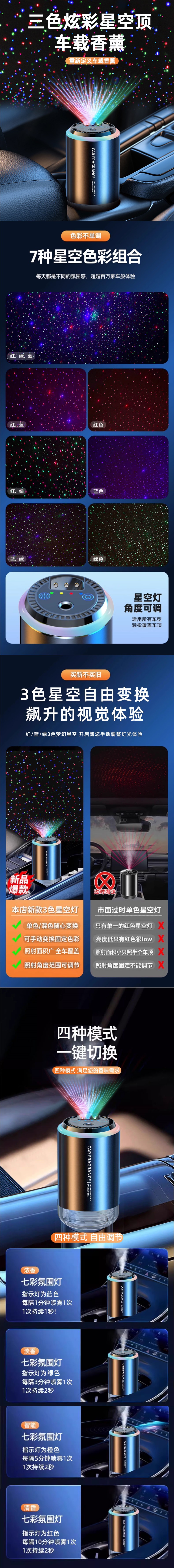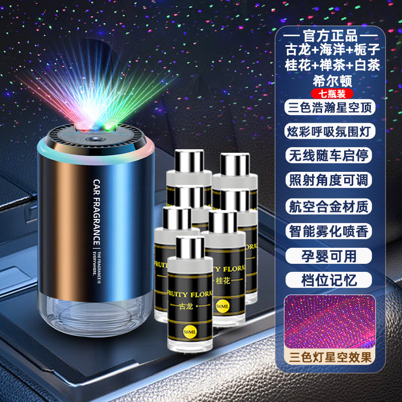 • 7가지 향 각 1병 | 3색 별하늘 천장 + 주변광 + 자동차 시동 및 정지 + 선물 상자 포장 | 아로마테라피 머신 1개 + 향수 7병