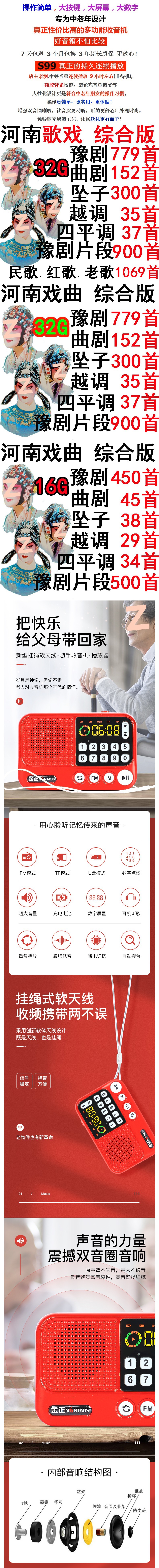 Jin Zheng 허난 오페라 라디오 포켓 멀티 사용 휴대용 스피커 작은 미니 충전 카드 오페라 도매
