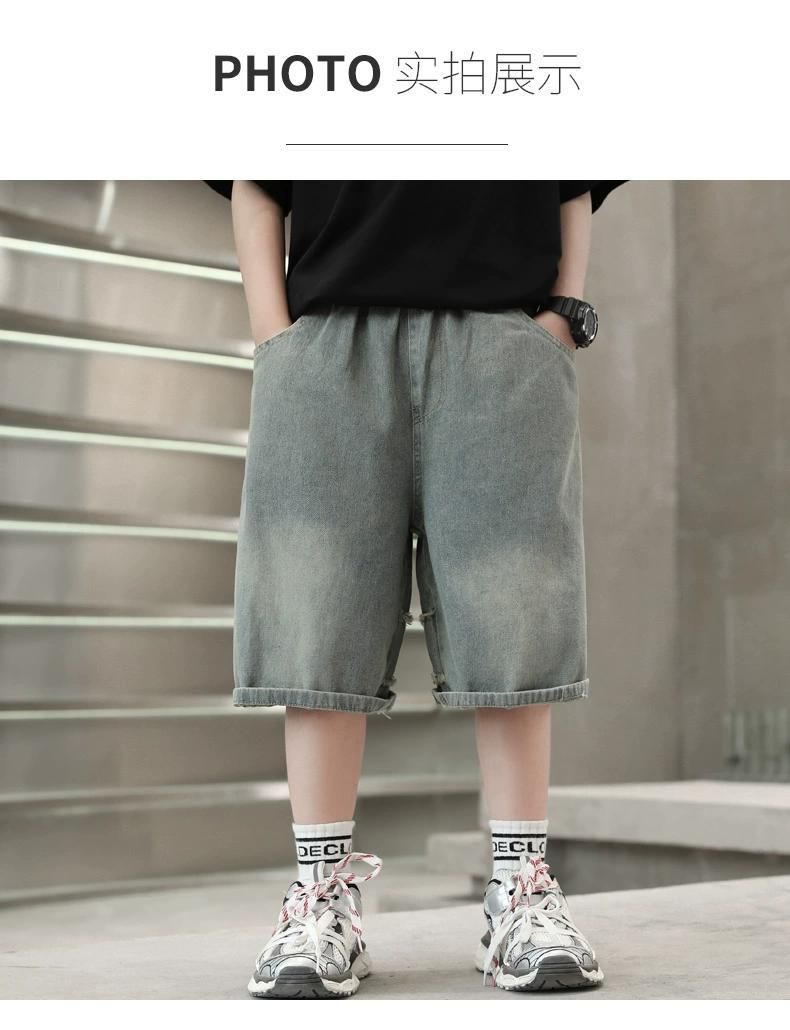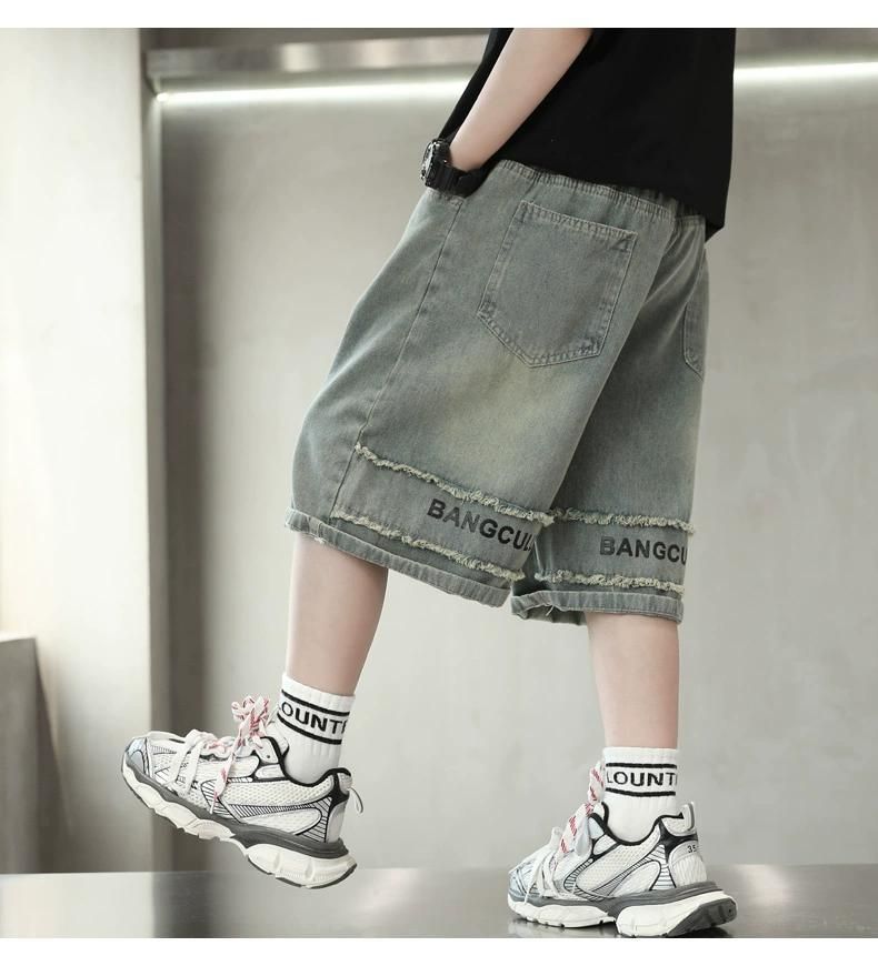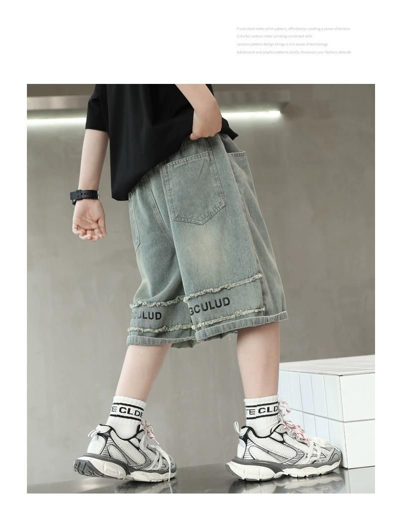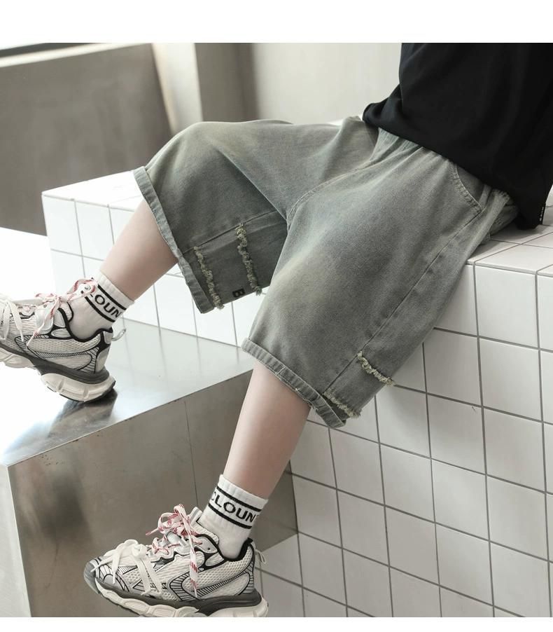 소년 여름 청바지 2025 새로운 스타일 큰 어린이 여름 바지 어린이 소년 5 점 바지 대외 무역을위한 트렌디 바지스토어 가기