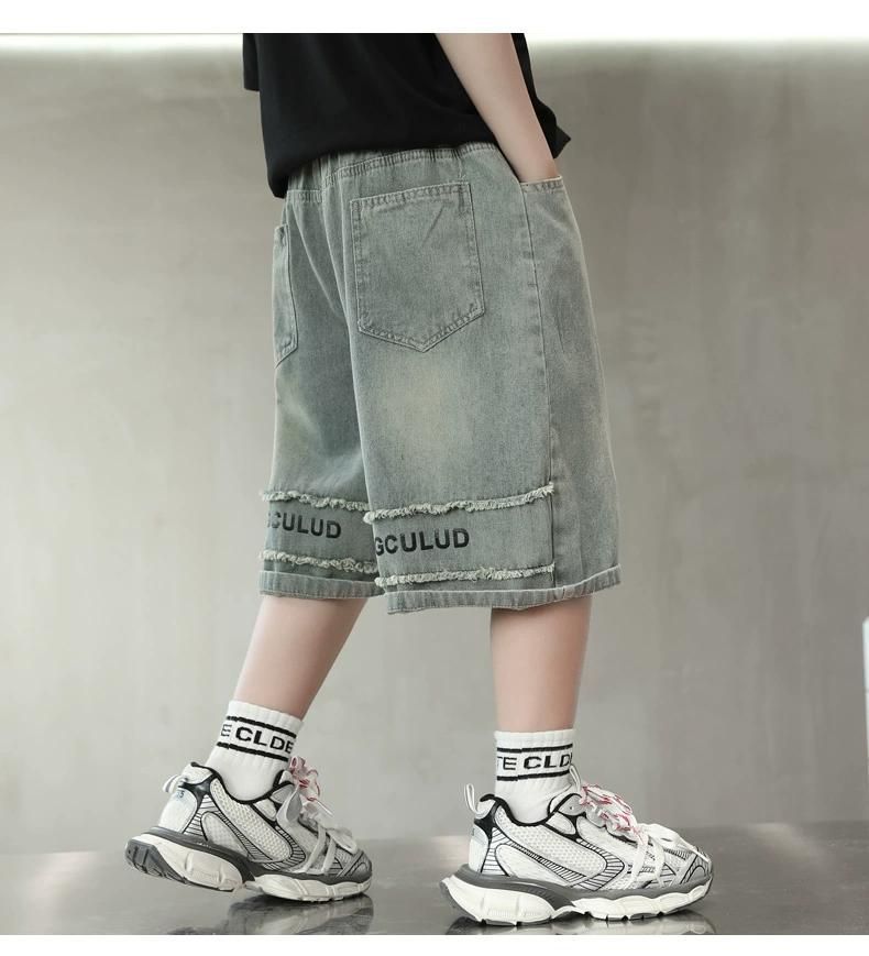 소년 여름 청바지 2025 새로운 스타일 큰 어린이 여름 바지 어린이 소년 5 점 바지 대외 무역을위한 트렌디 바지