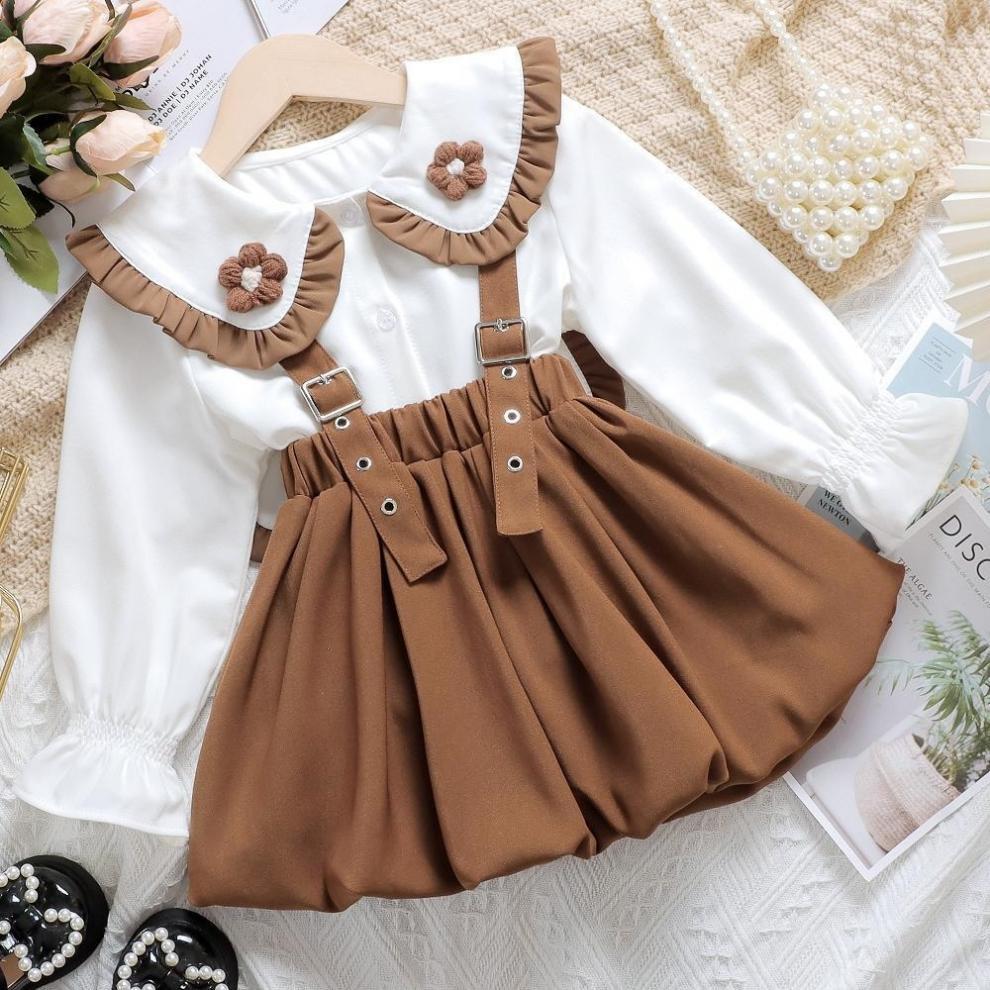 소녀 세트 봄과 가을 2025 새로운 세련된 패션 바느질 올 매치 스트랜드 원피스 꽃 셔츠 인터넷 축하 투피스 세트스토어 가기