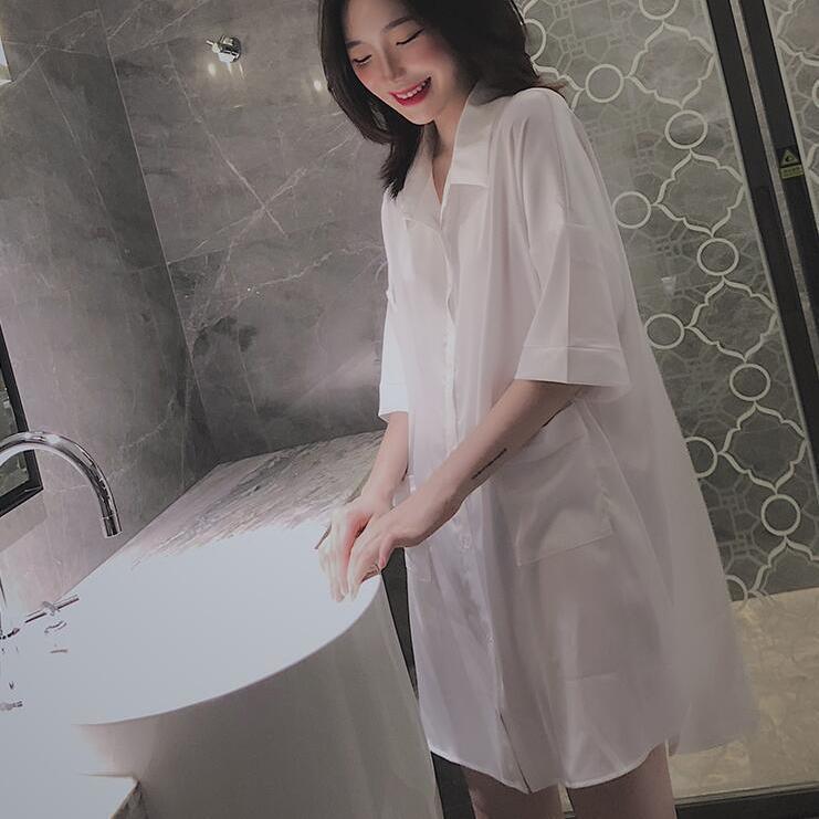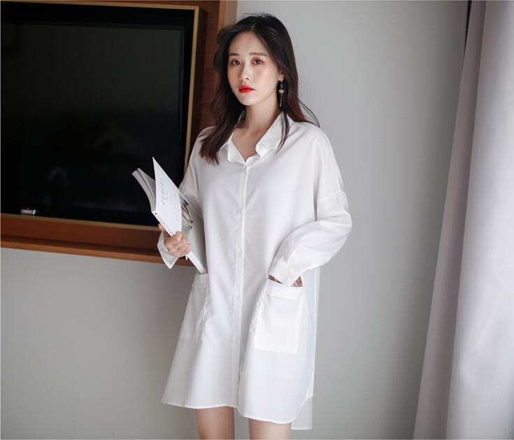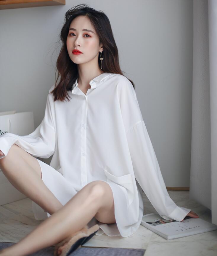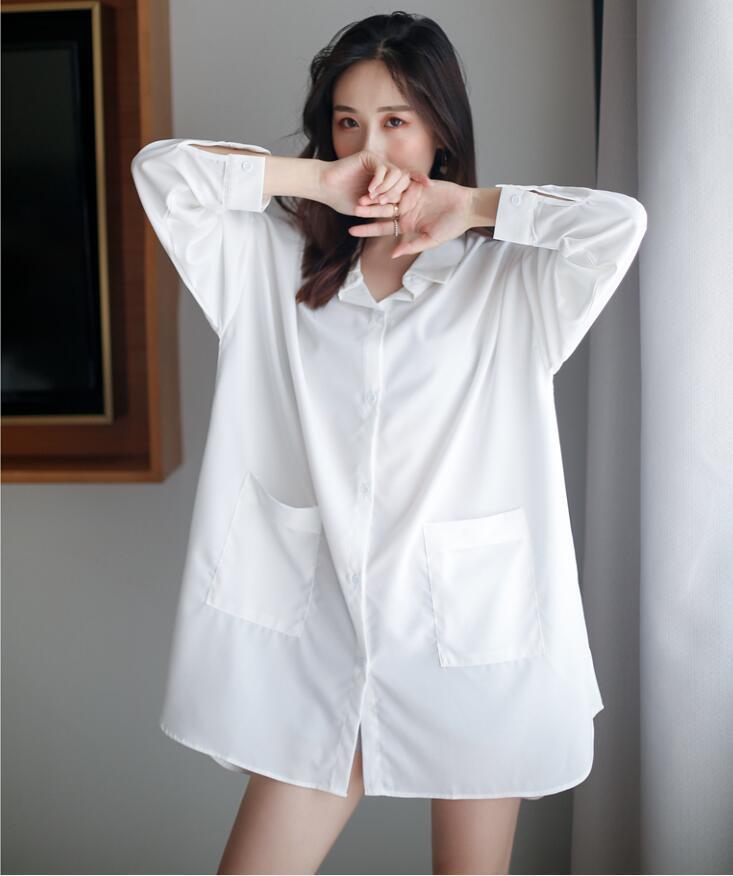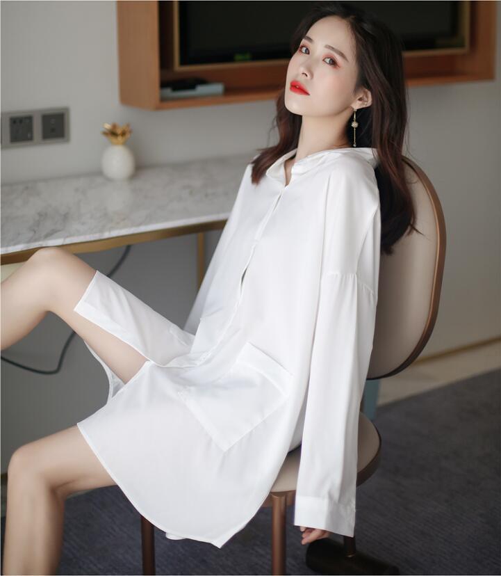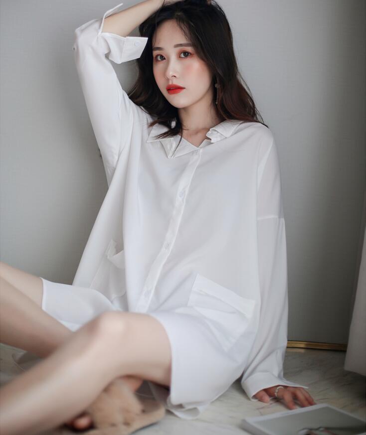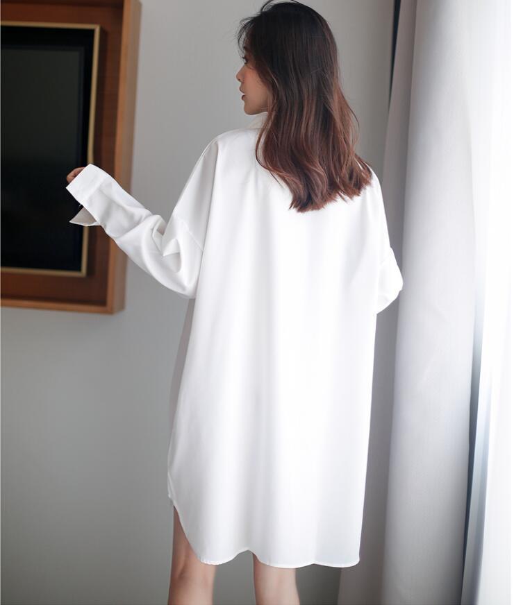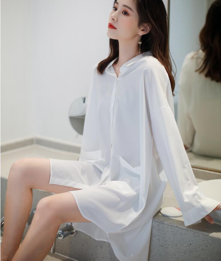섹시한 나이트 드레스 느슨한 화이트 셔츠 신부의 신부 들러리 모닝 가운 잠옷 얇은 플러스 사이즈 시폰 올 매치 셔츠 선스크린 록스토어 가기