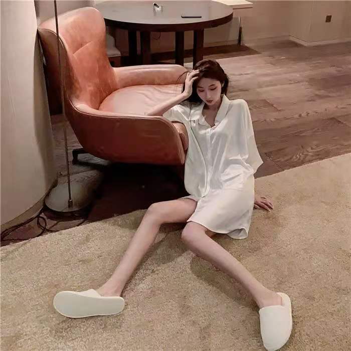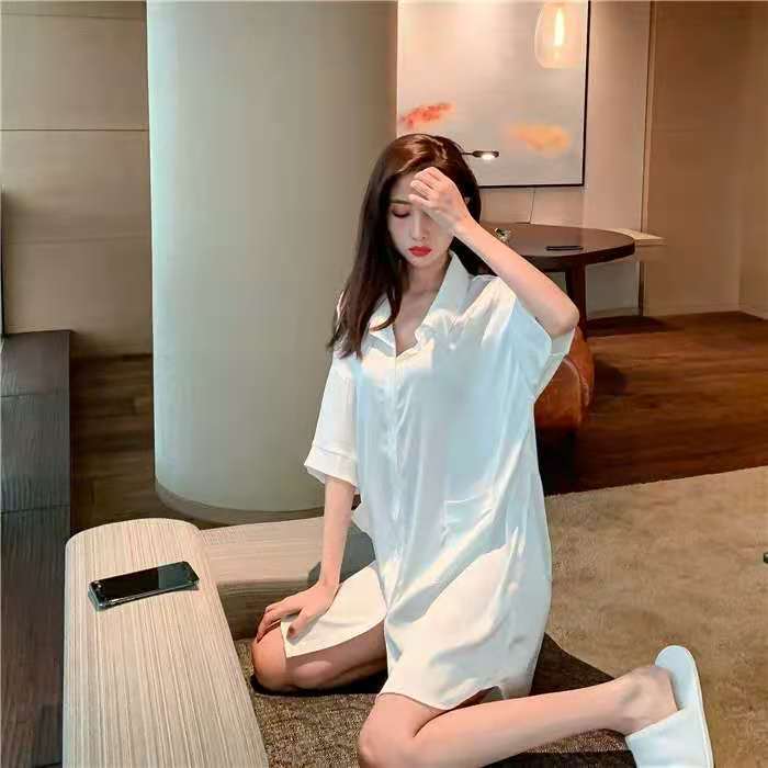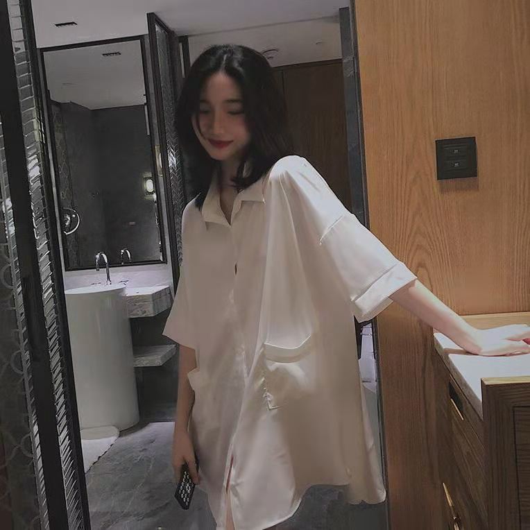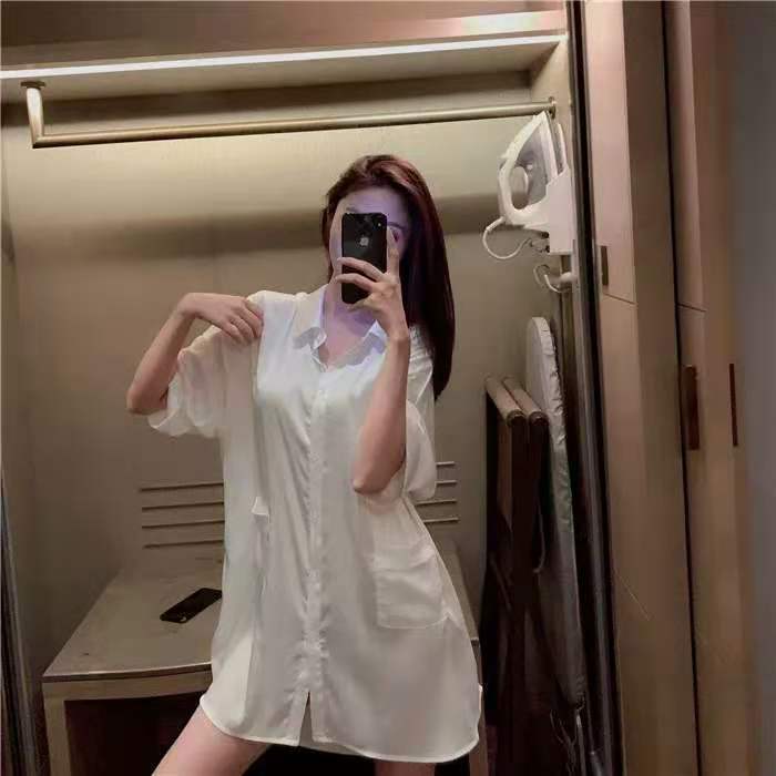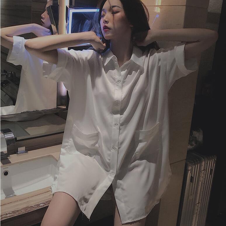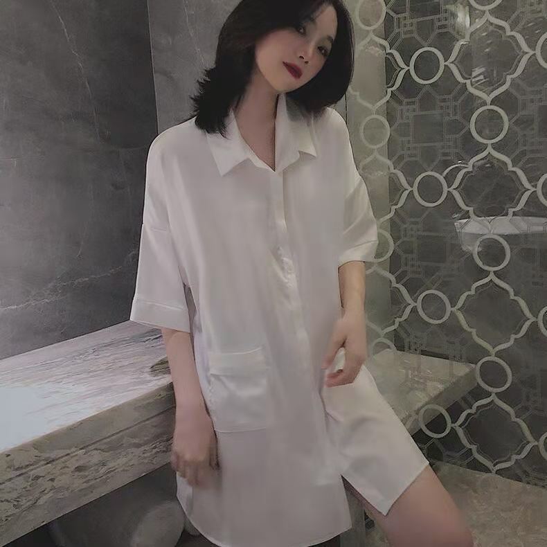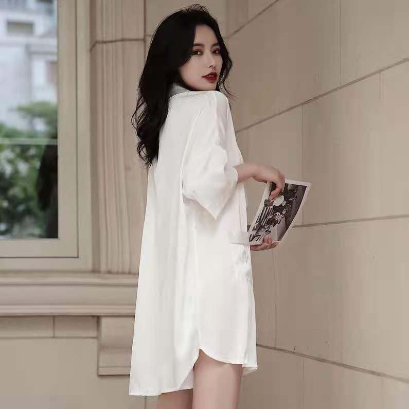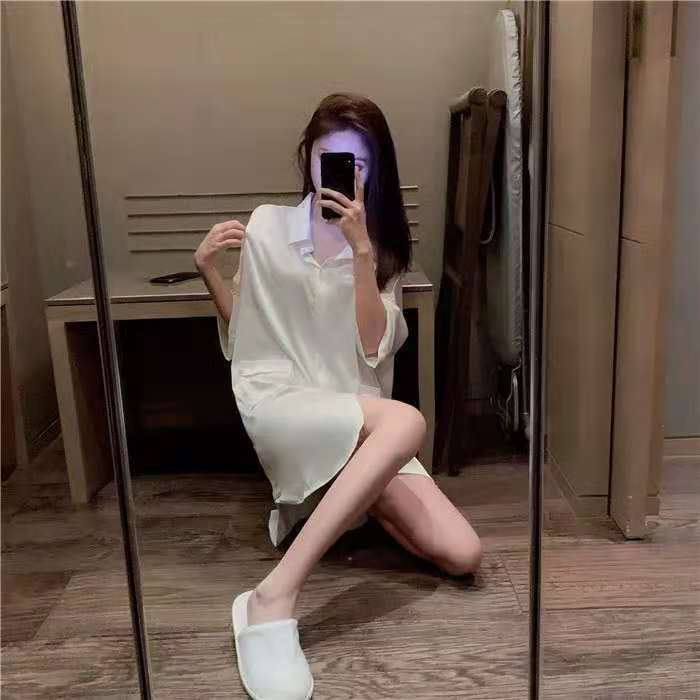 섹시한 나이트 드레스 느슨한 화이트 셔츠 신부의 신부 들러리 모닝 가운 잠옷 얇은 플러스 사이즈 시폰 올 매치 셔츠 선스크린 록스토어 가기