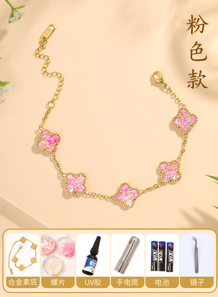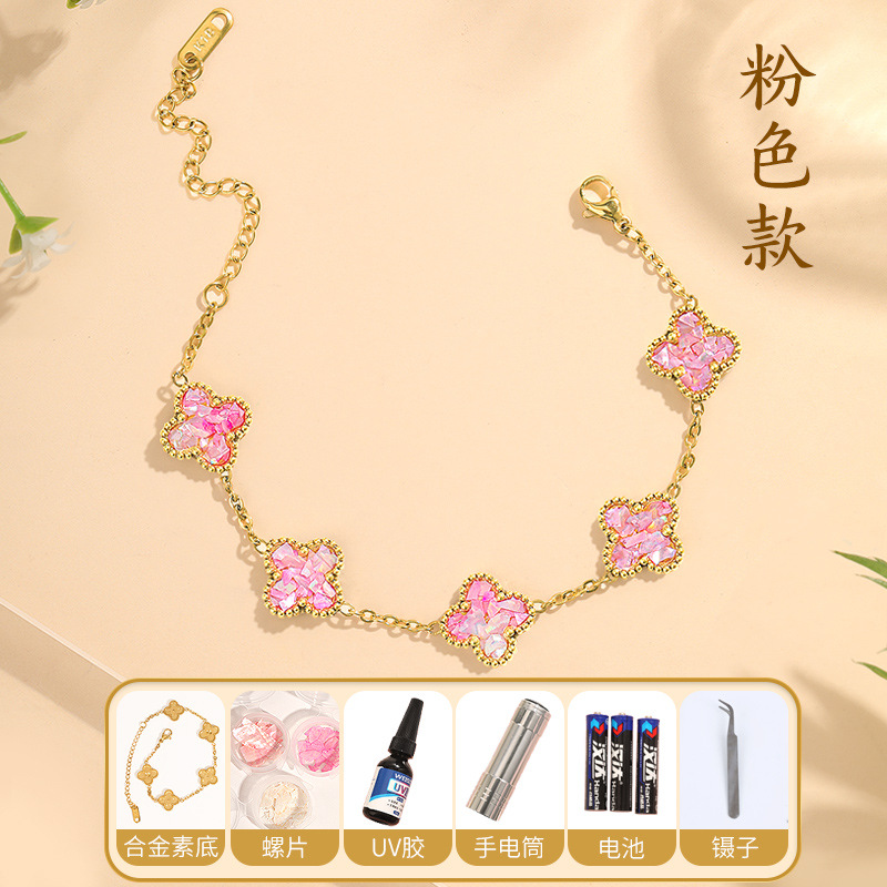 • 자개 핑크 팔찌 네잎 클로버 [재료 풀세트 패키지]