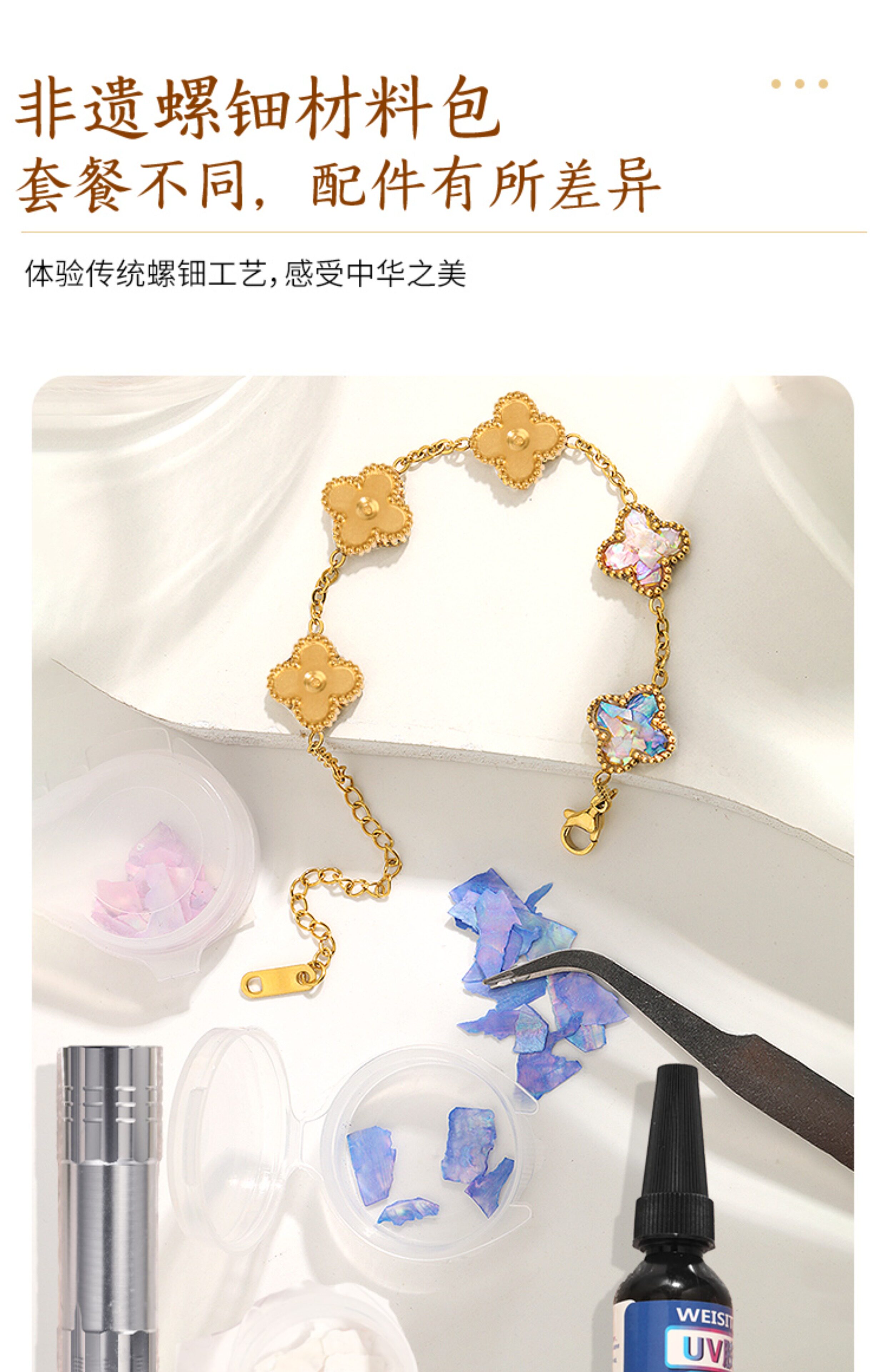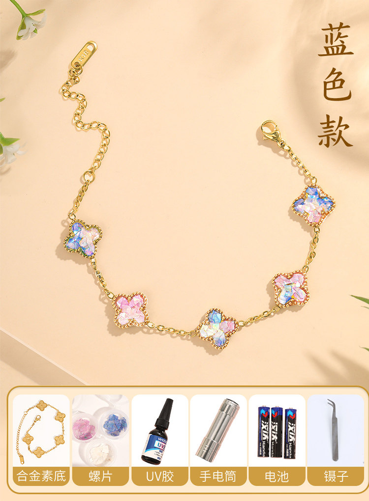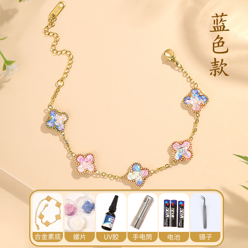• 자개 - 파란색 팔찌 네잎 클로버 [재료 풀세트 패키지]