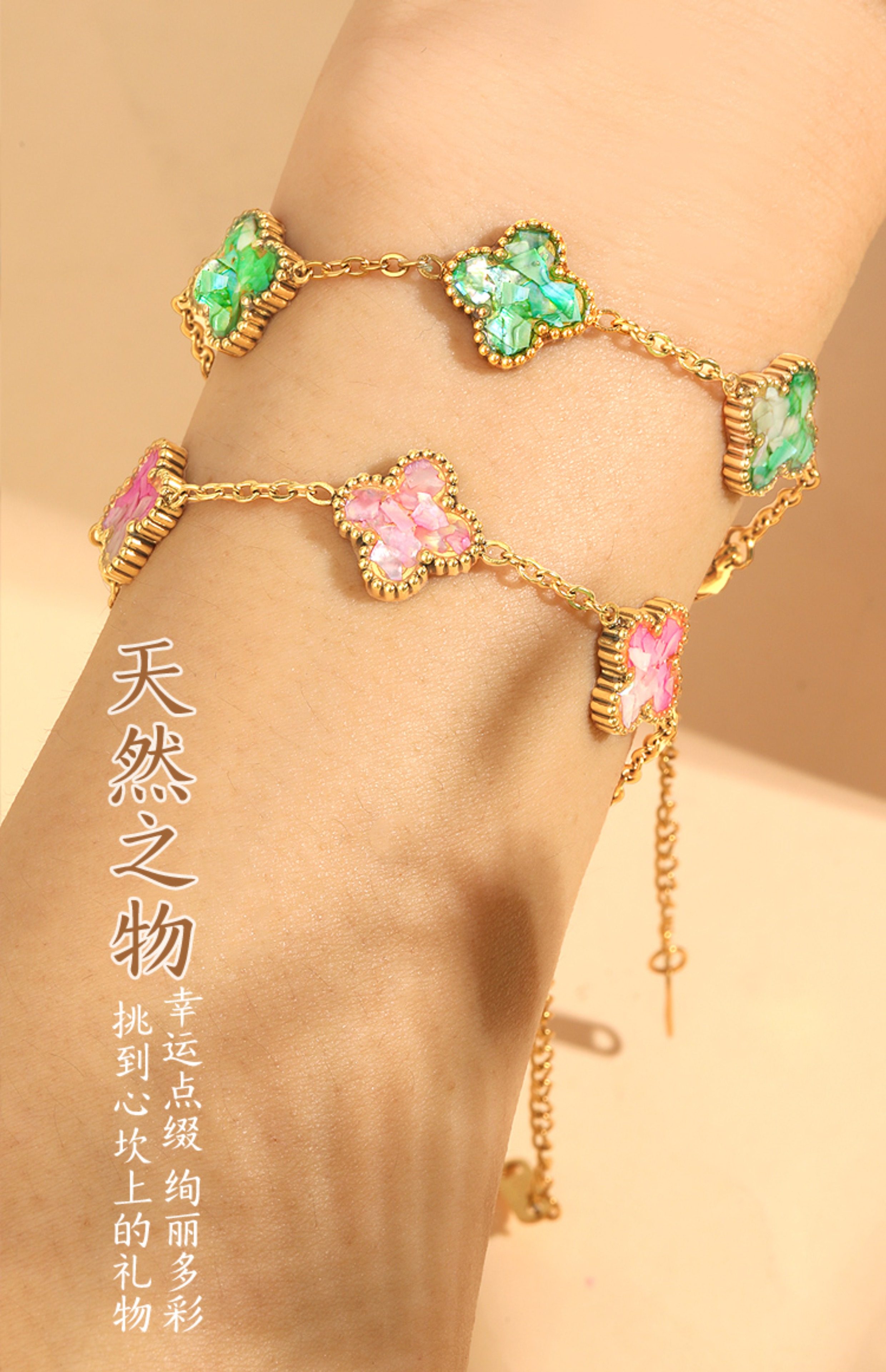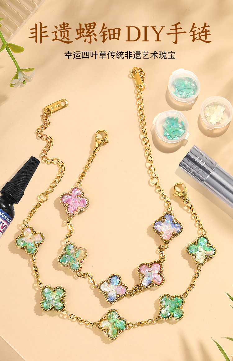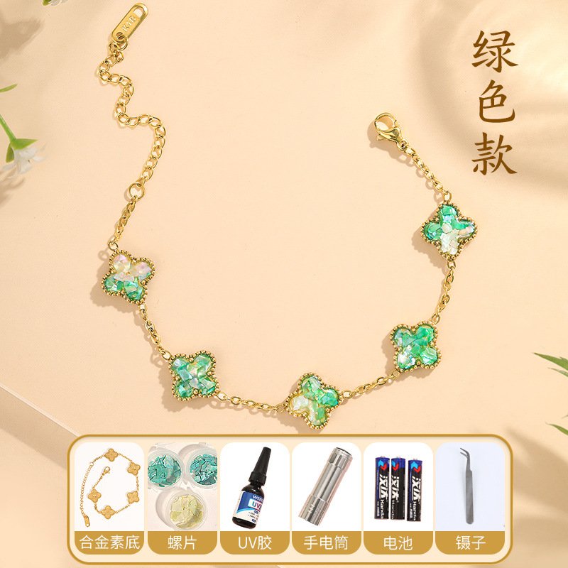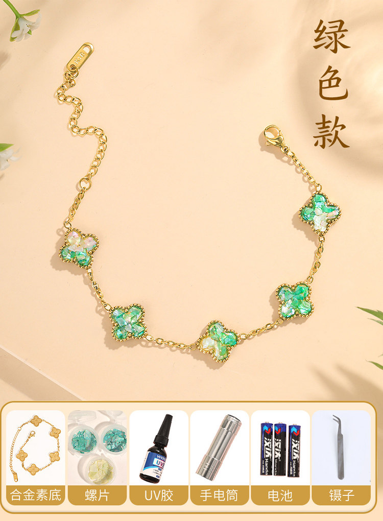 • 자개-녹색 팔찌 네잎 클로버 [재료 풀세트 패키지]