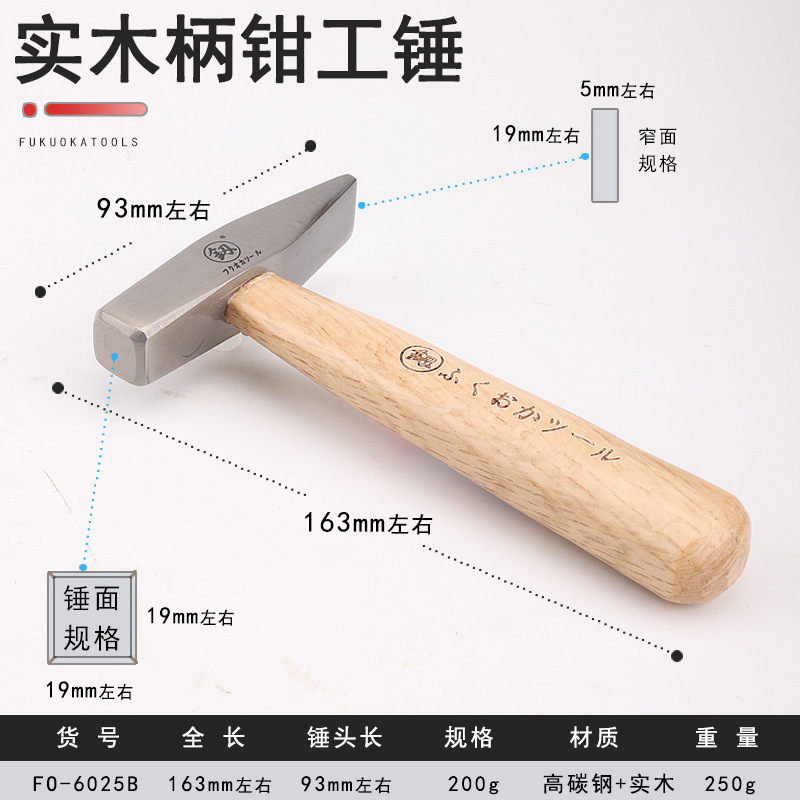 후쿠오카 나무 손잡이 높은 탄소 강철 200G 피터 망치 FO-6025B 손 도구 미니 망치 수동 너트 망치스토어 가기