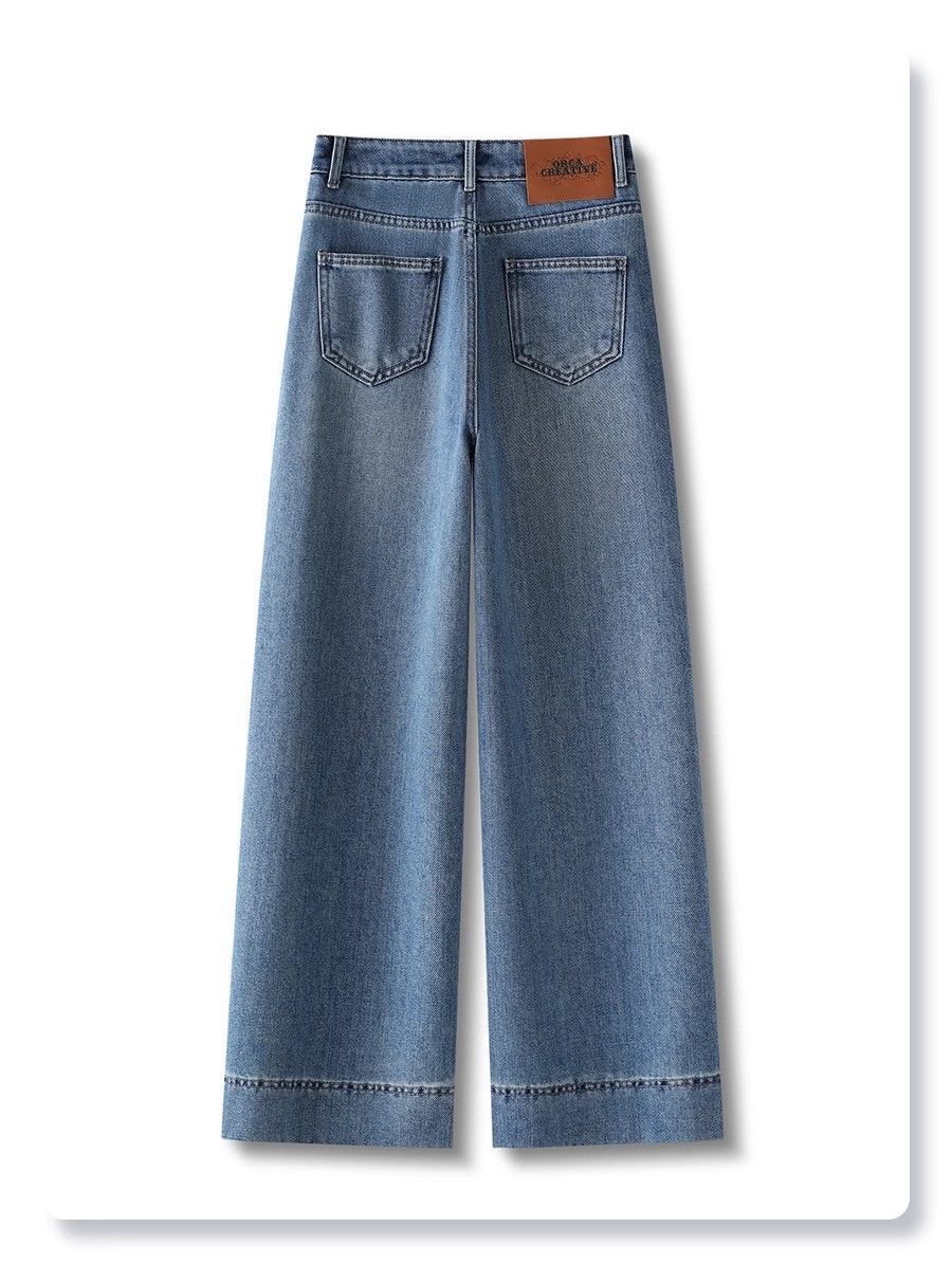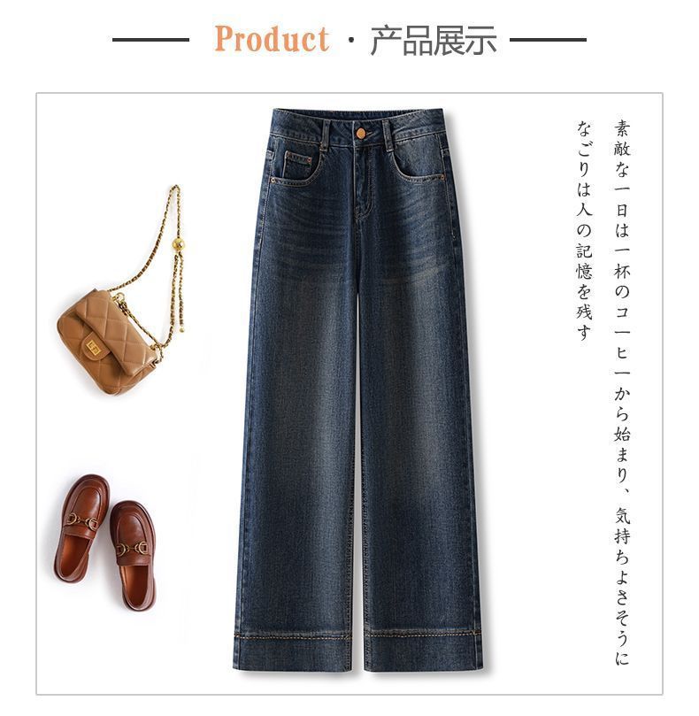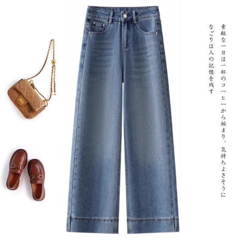 A6C 연한 색상의 루즈핏 와이드 레그 청바지 여성용 2025년 가을 신상 슬림핏 좁은 핏 스트레이트 팬츠 배형 체형용스토어 가기