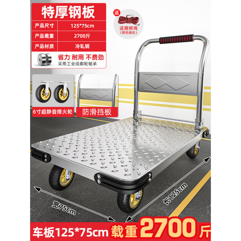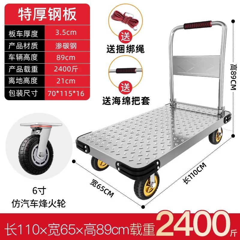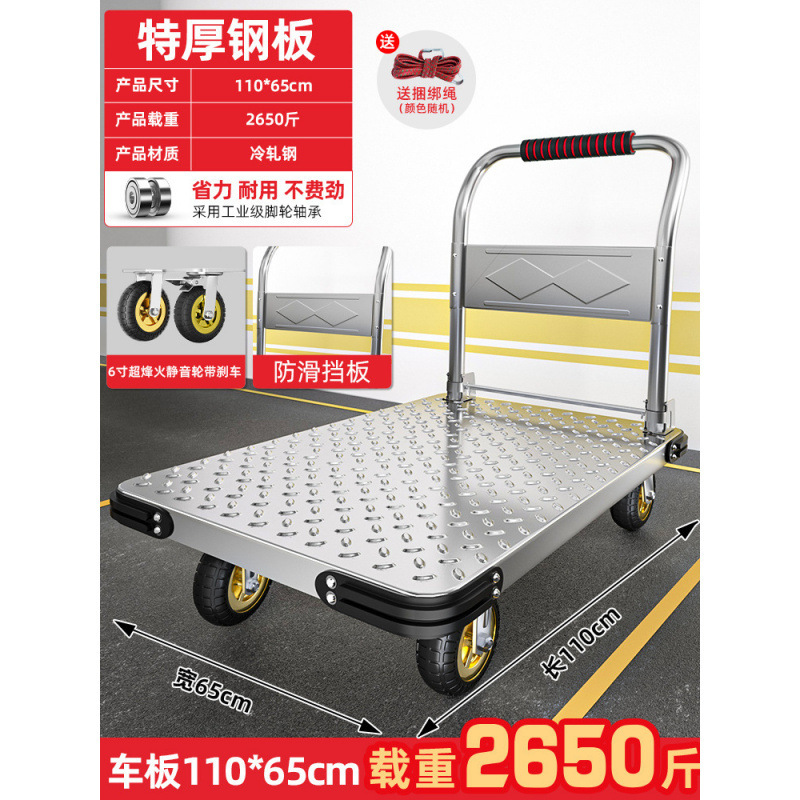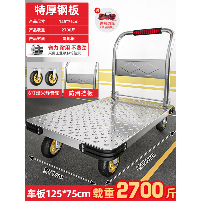 스쿠터화물 강판 카트 트롤리 트럭 가정용 플랫 베드 자동차 휴대용 접이식 소형 카트 핸들러