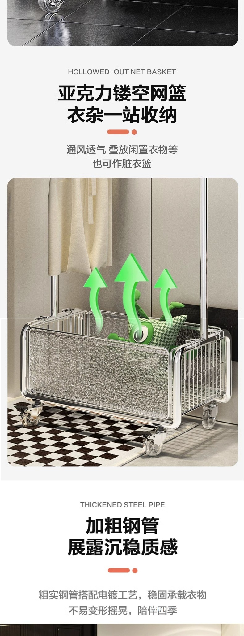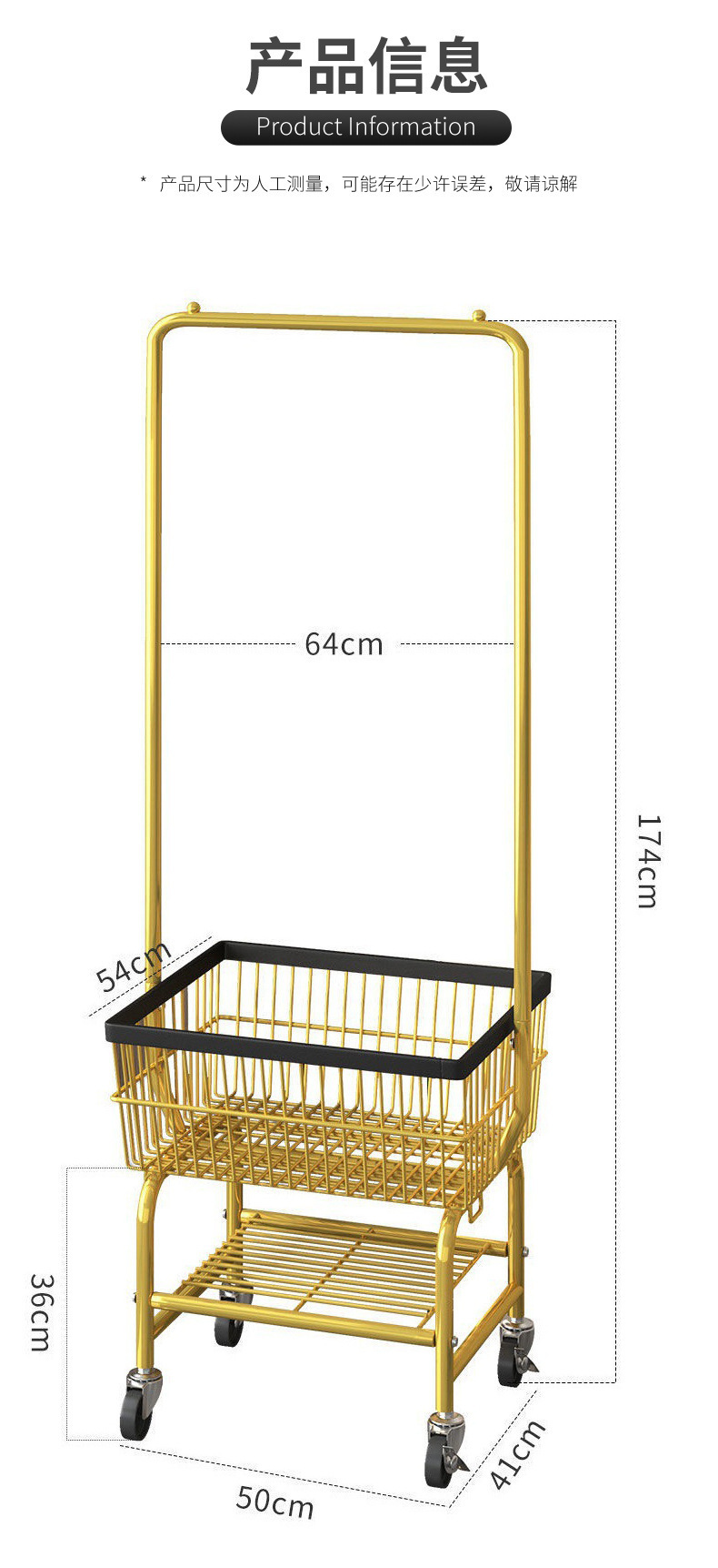 • 골드 [수납바구니 + 옷걸이] + 고무바퀴