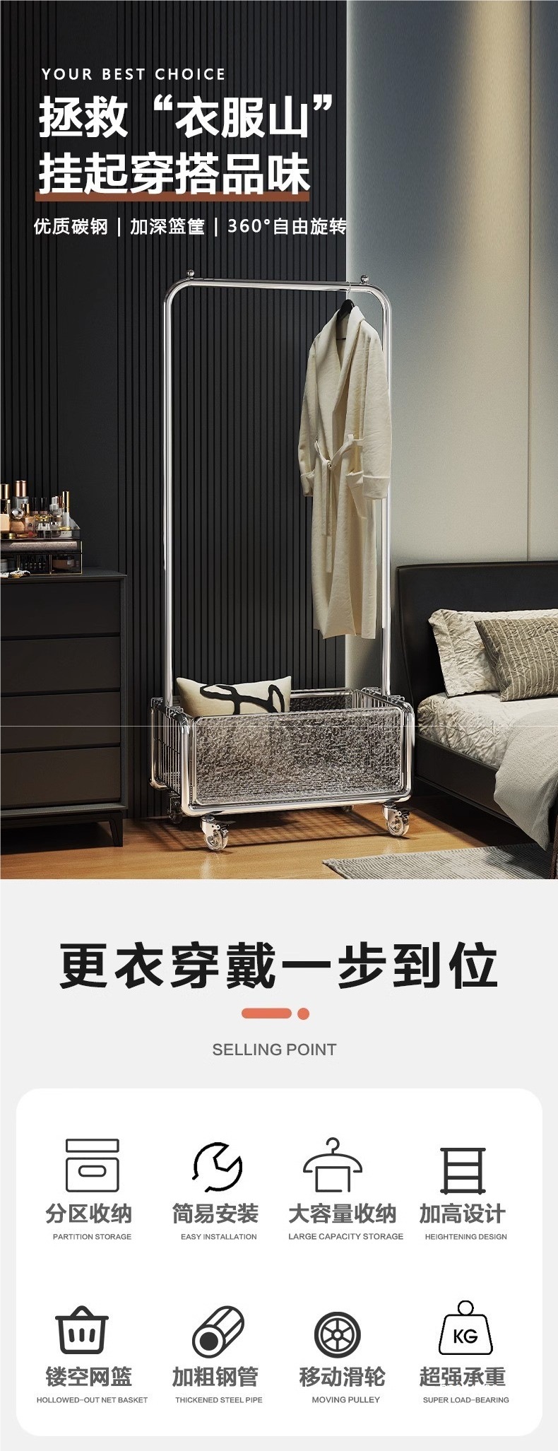 • 클래식 블랙 [수납바구니 + 옷걸이] + 고무바퀴