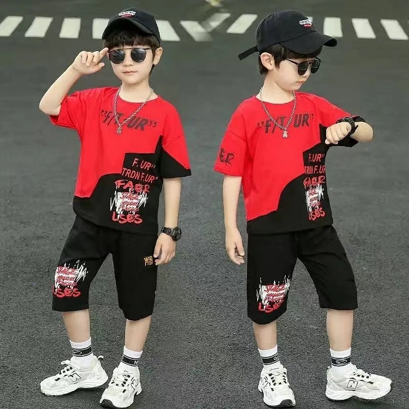 남학생 반팔 세트 2025 년 여름 새로운 중대형 어린이 얇은 티셔츠 반바지 투피스 잘 생긴 어린이 패션스토어 가기