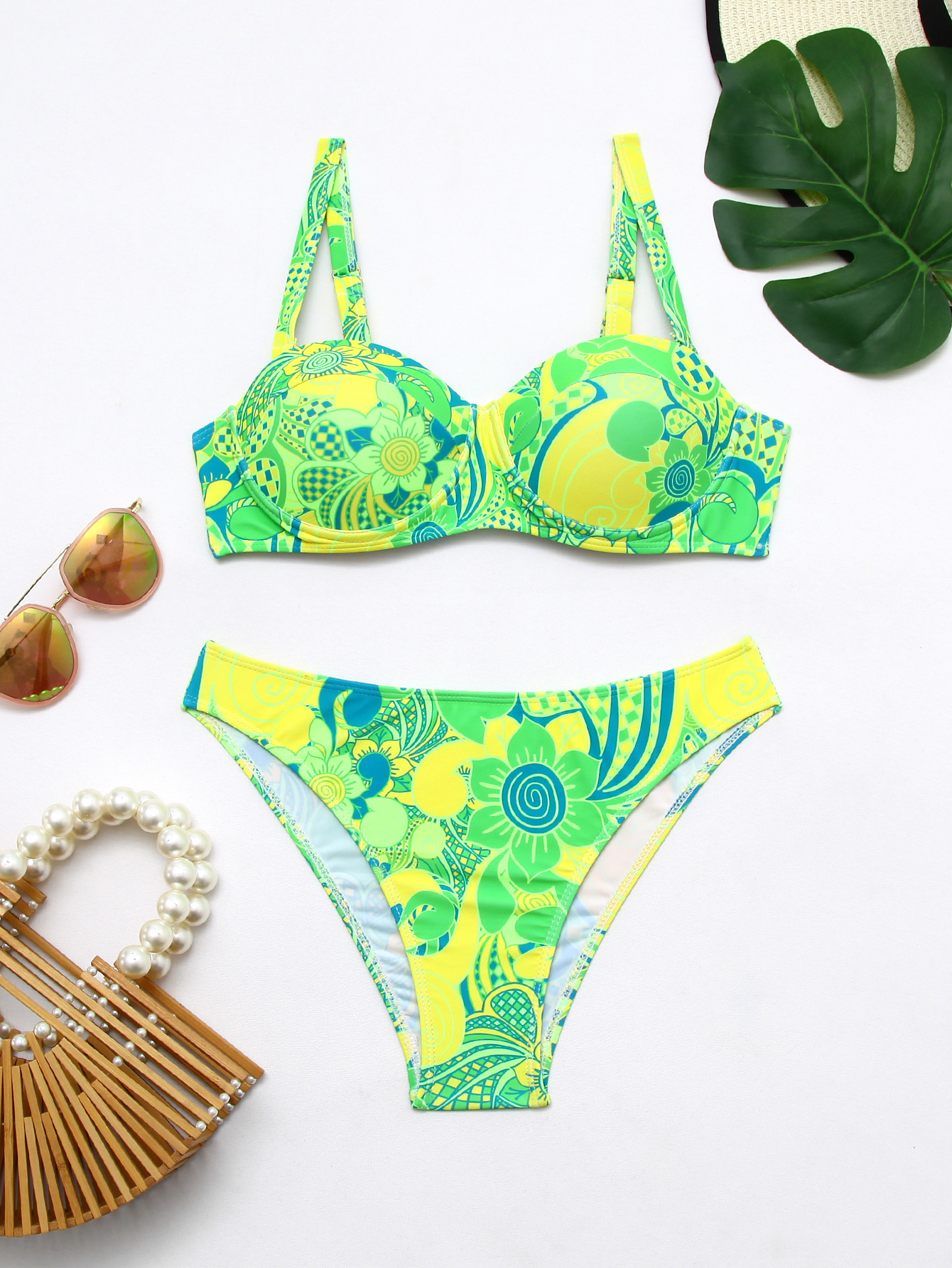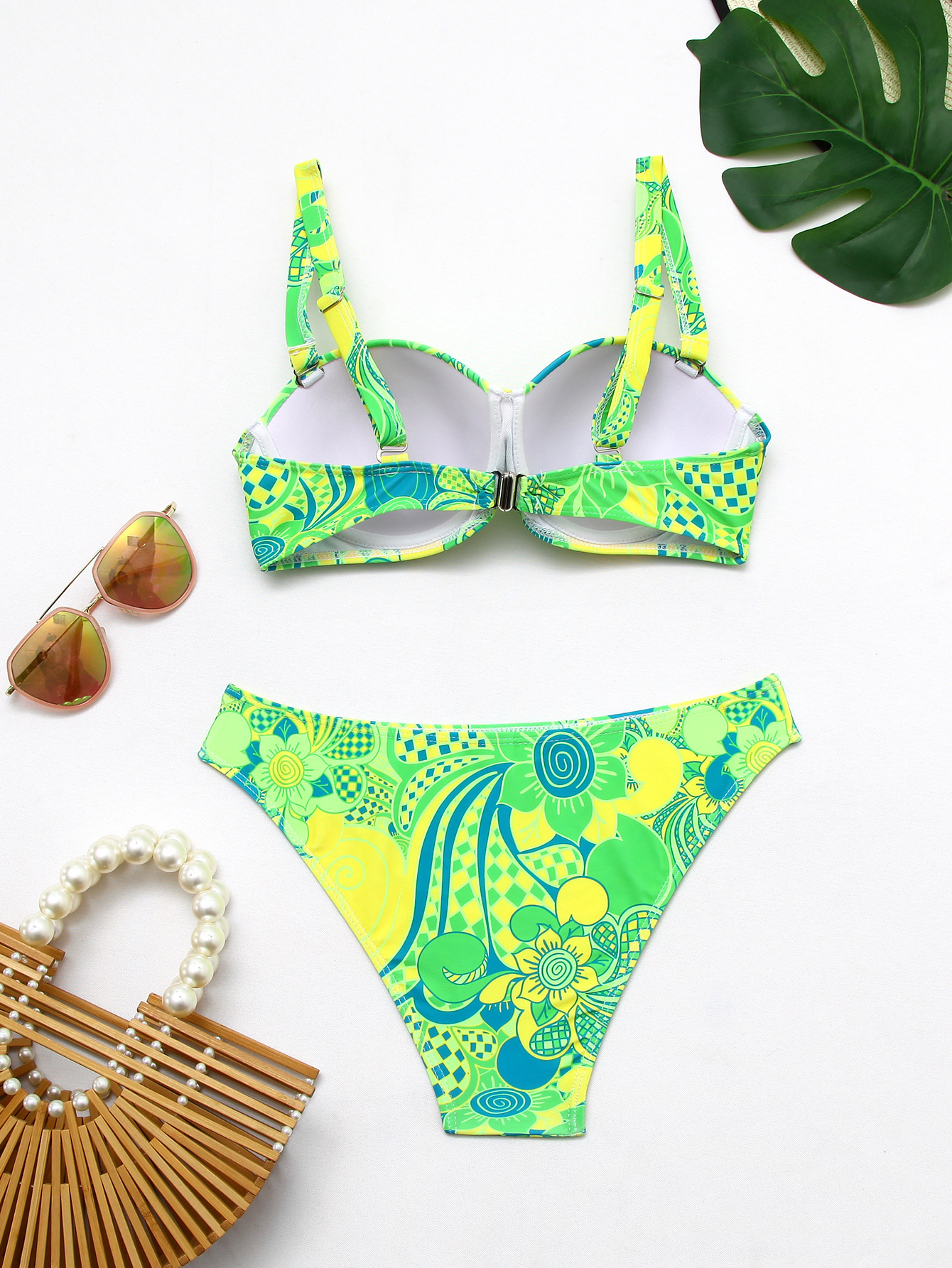유럽과 미국의 대외 무역 새로운 수영복 여성 패션 프린트 섹시한 스플릿 비키니 섹시한 푸시 업 크로스 보더 비치 수영복