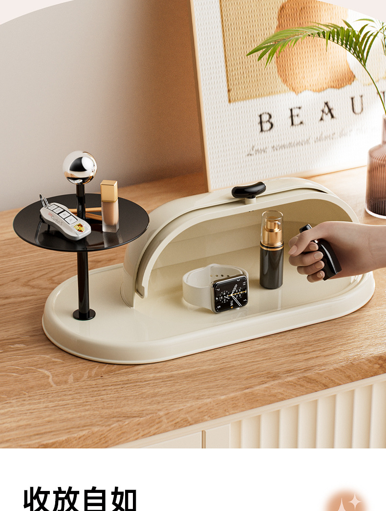 입구 저장 상자 가정용 데스크탑 잡화 저장 랙 장식품 주요 저장 랙 먼지 방지 플립 폴드 스토리지 랙