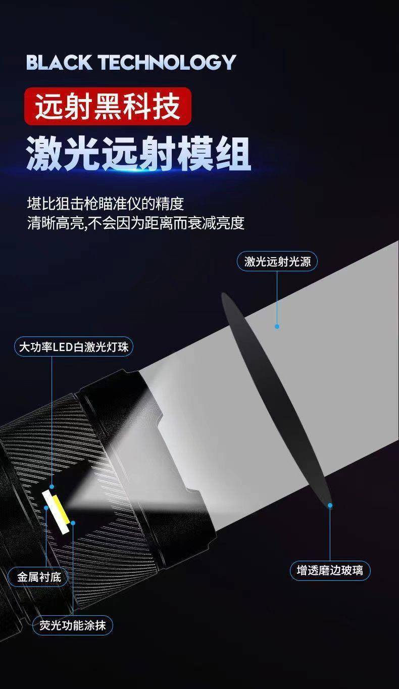 • 백색 레이저/강한 빛 장거리/망원 조정/밝은 전자 디스플레이 상단 [88000 대용량] 고속 충전