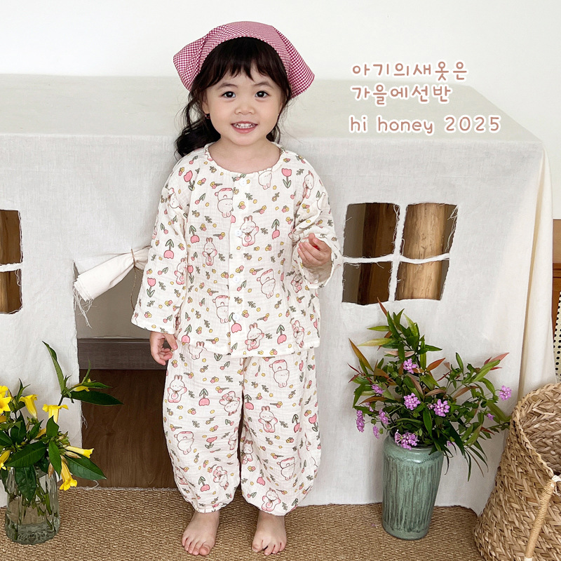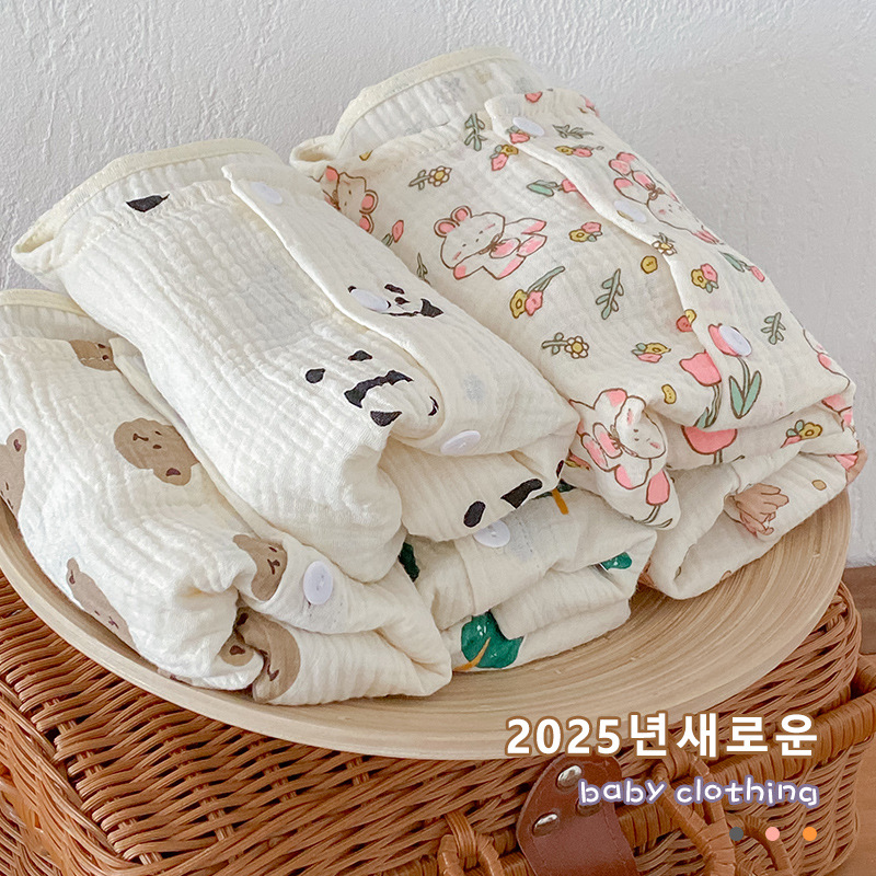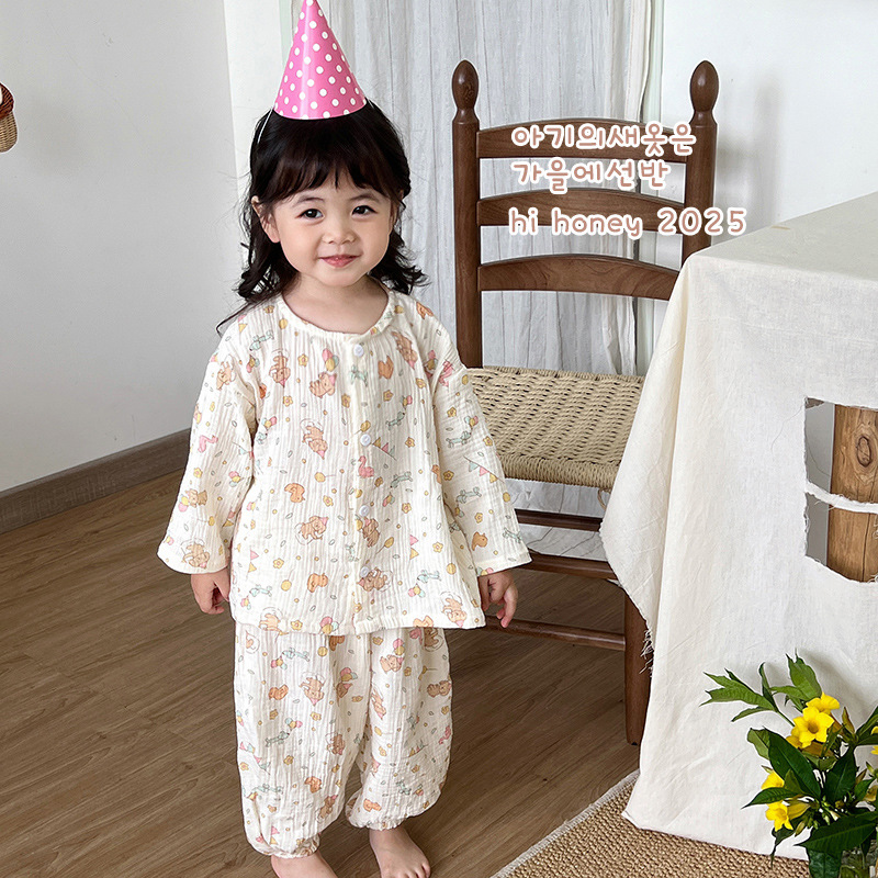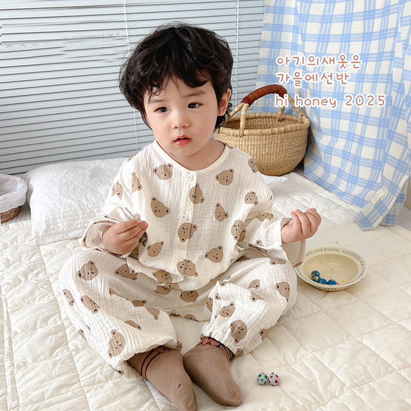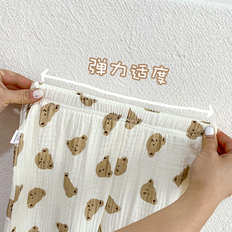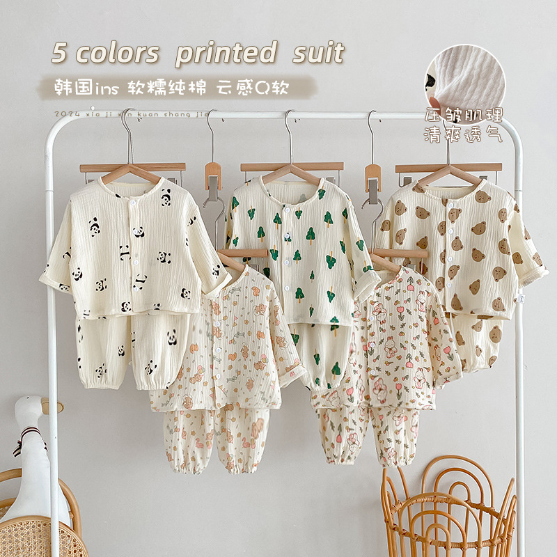 어린이 잠옷 여름 순면 얇은 아기 더블 거즈 홈 의류 세트 봄과 가을 남녀 아기 에어컨 옷스토어 가기