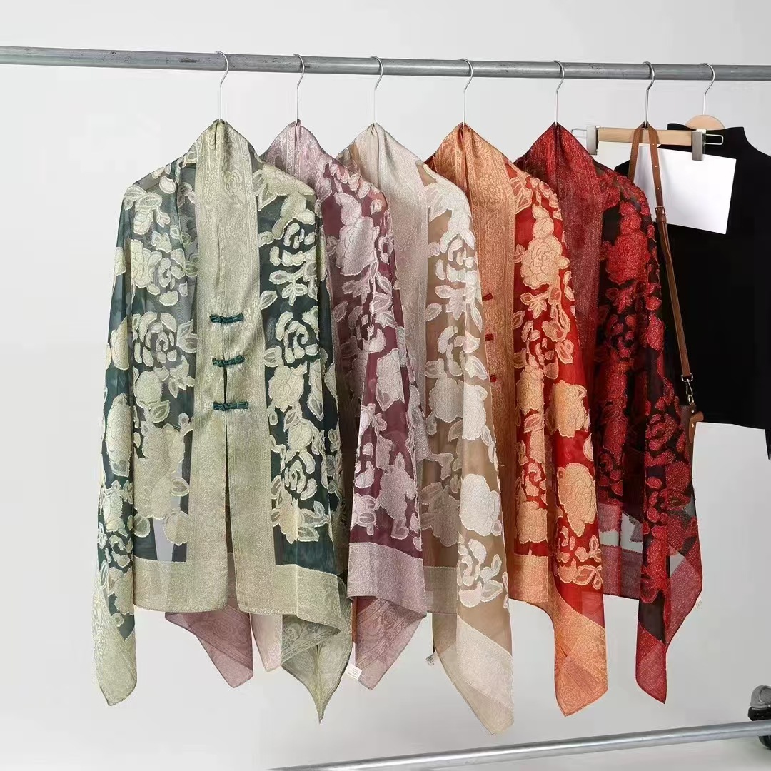 2024 디자이너 새로운 봄과 여름 얇은 컷 실크 로즈 중국 느슨한 플러스 사이즈 유명한 스타일 어머니의 목도리스토어 가기