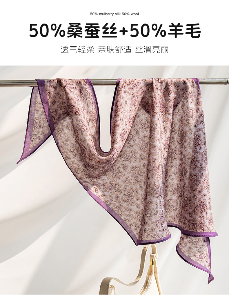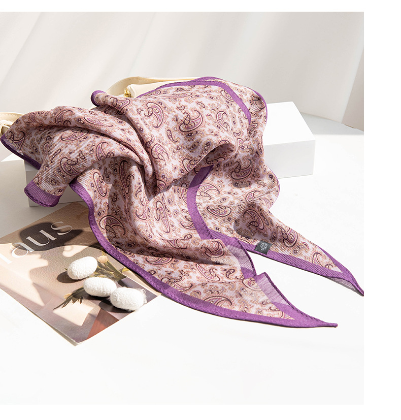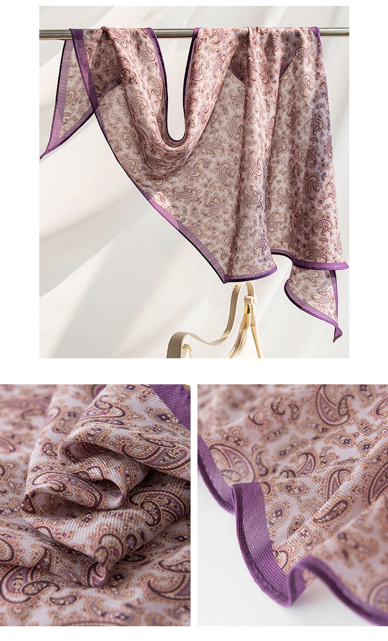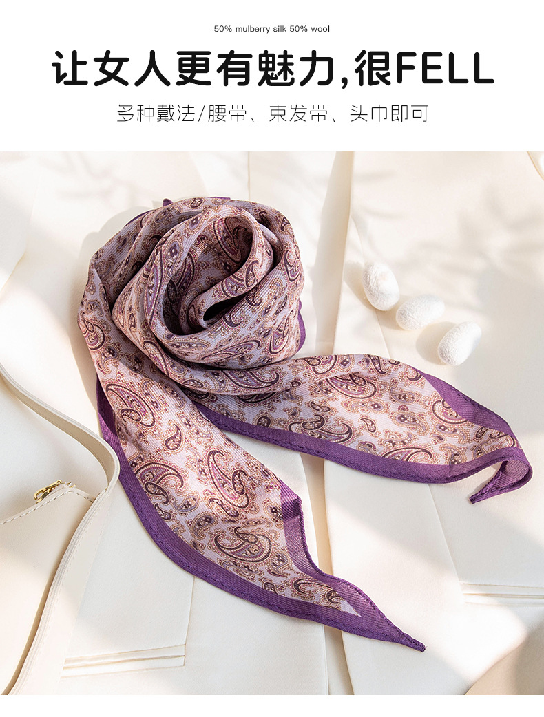뽕나무 실크 양모 긴 스카프 고급 얇은 좁은 긴 작은 스카프 보라색 사이드 캐슈 꽃 리본 한국어