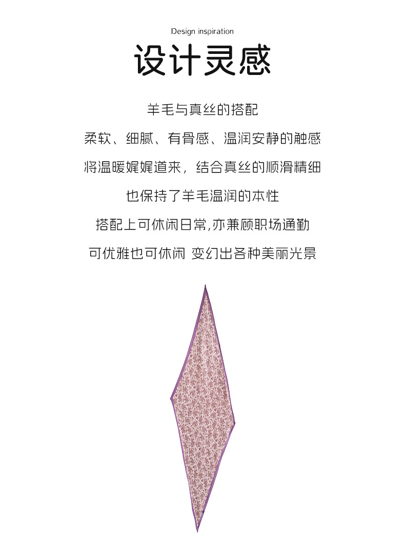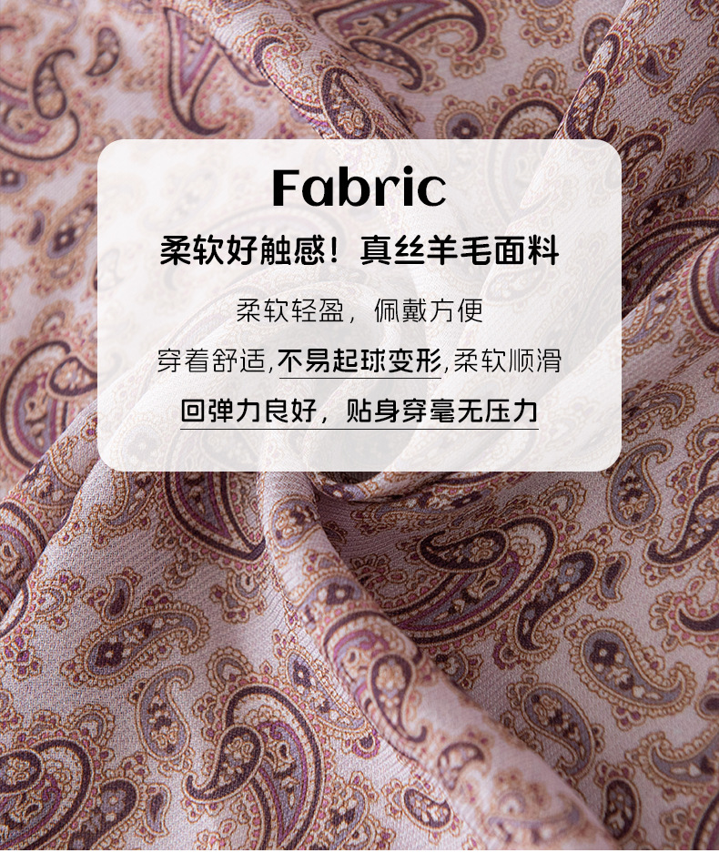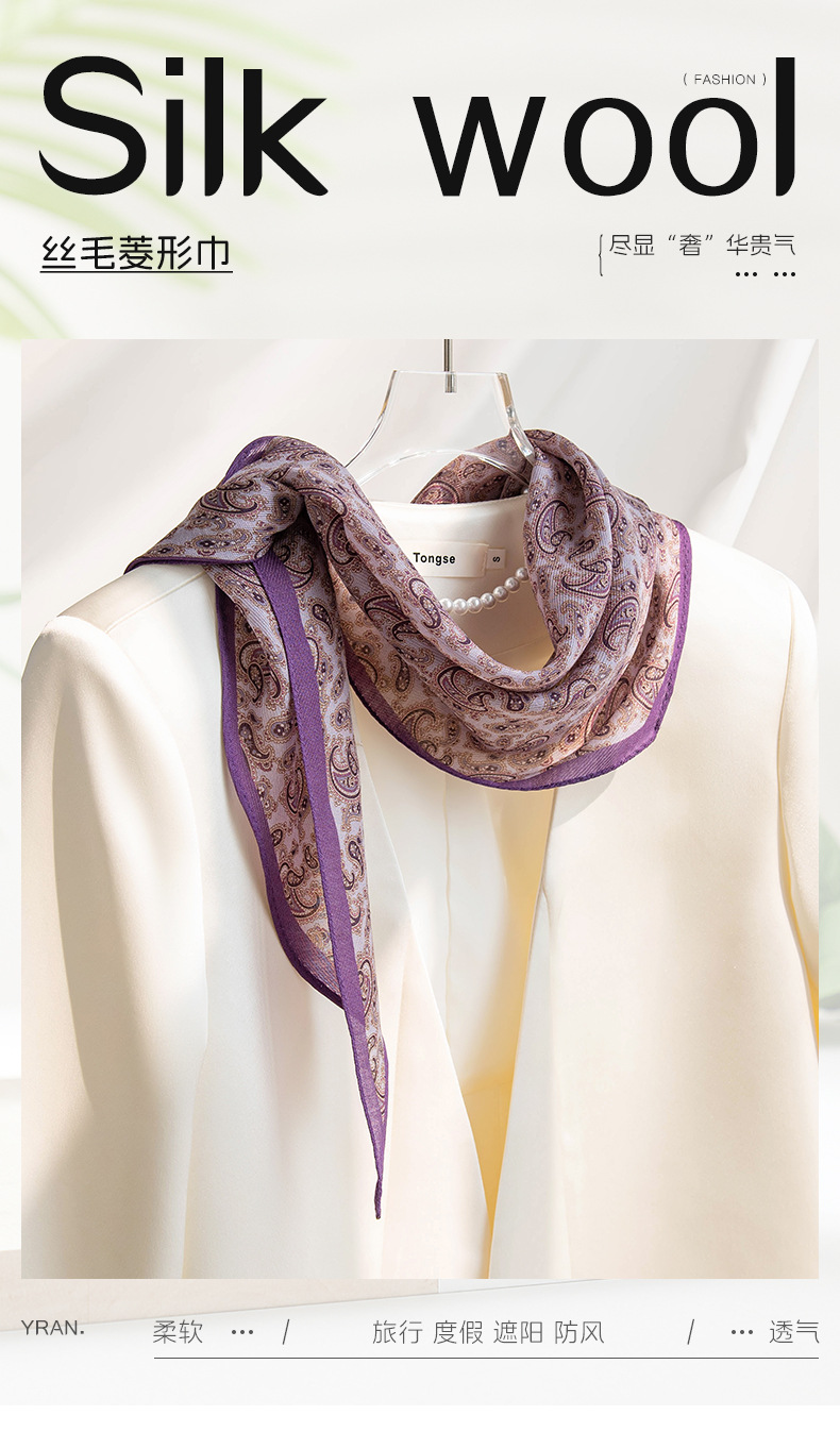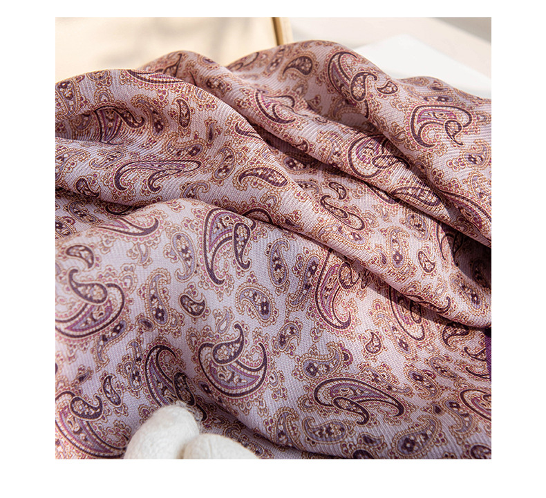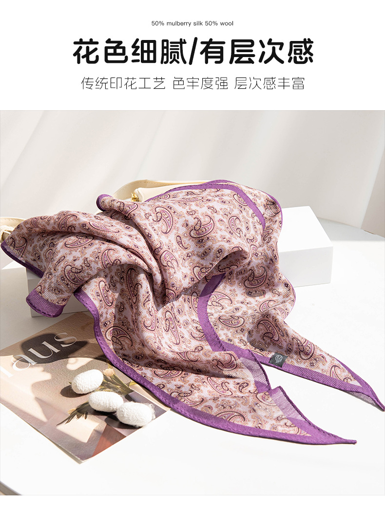 뽕나무 실크 양모 긴 스카프 고급 얇은 좁은 긴 작은 스카프 보라색 사이드 캐슈 꽃 리본 한국어
