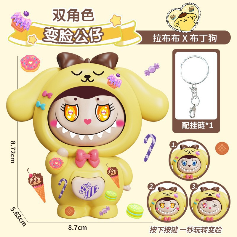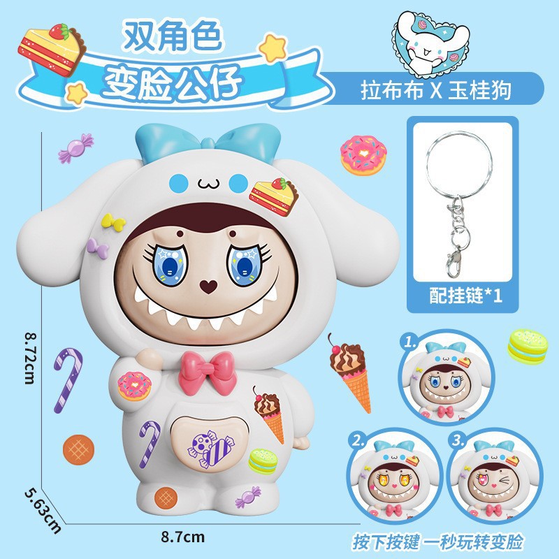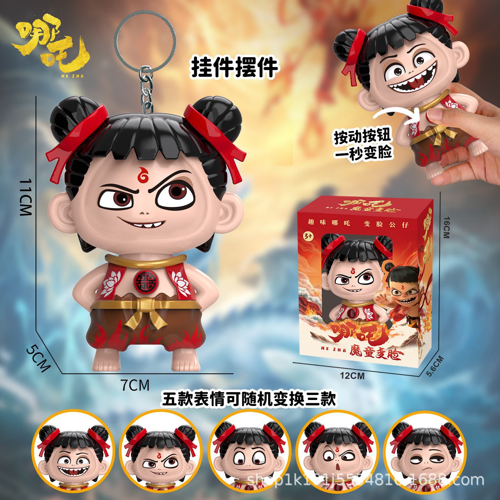 인형 유행 Nezha 얼굴 변경 프레스 얼굴 변경 labubu 펜던트 labubu 키 체인 인형 기계 선물 도매
