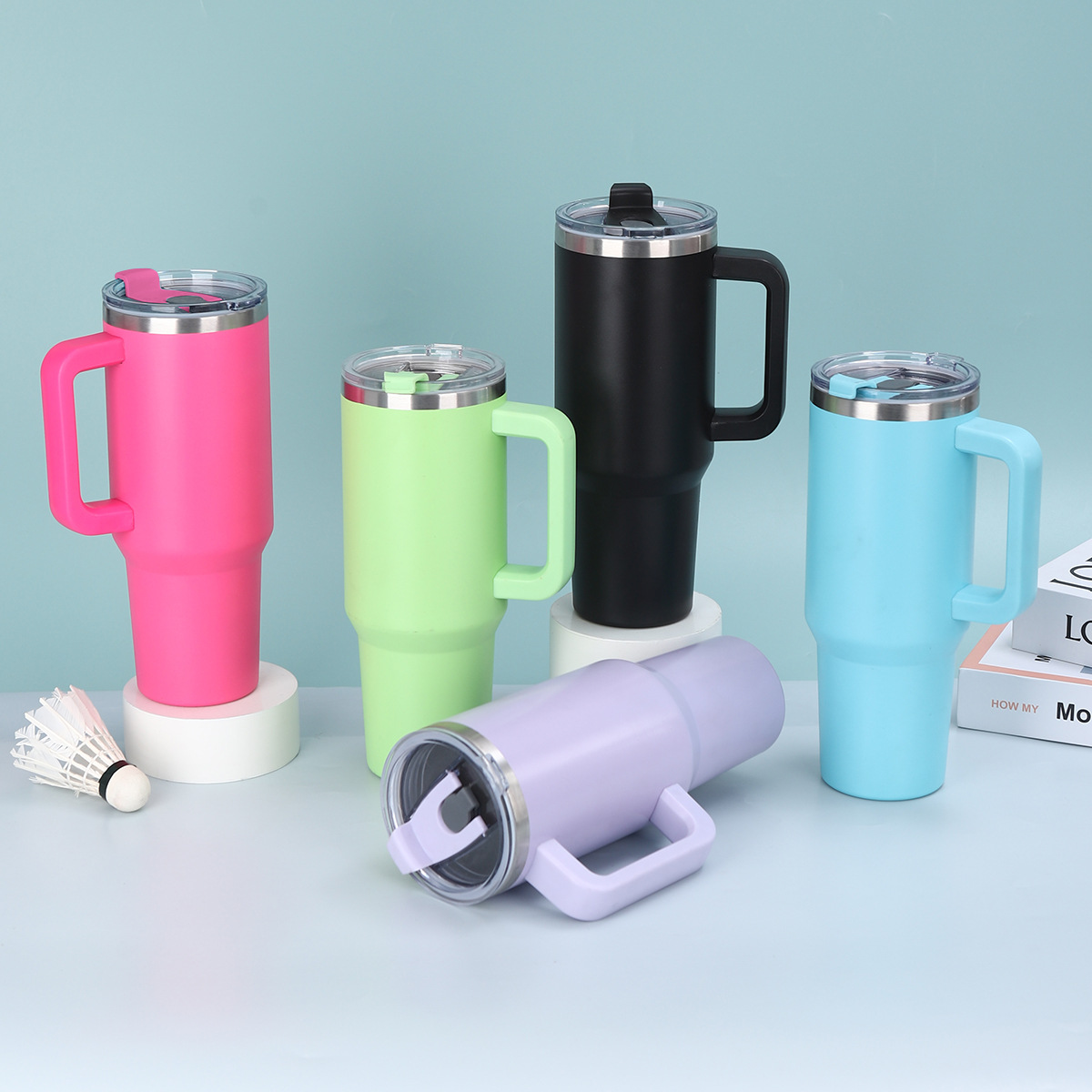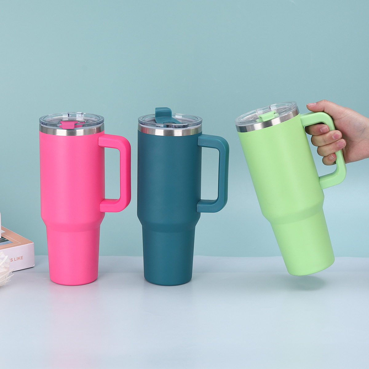 국경 40oz 핸들 자동차 컵 304 스테인레스 스틸 대용량 진공 보온병 컵 휴대용 아이스 컵