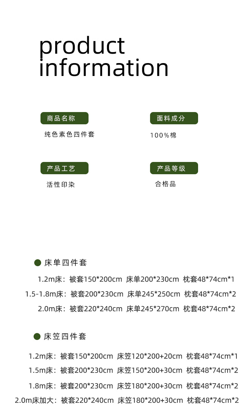 • 1.5m 침대 [시트 4개 세트] - 200x230cm 이불심에 적합