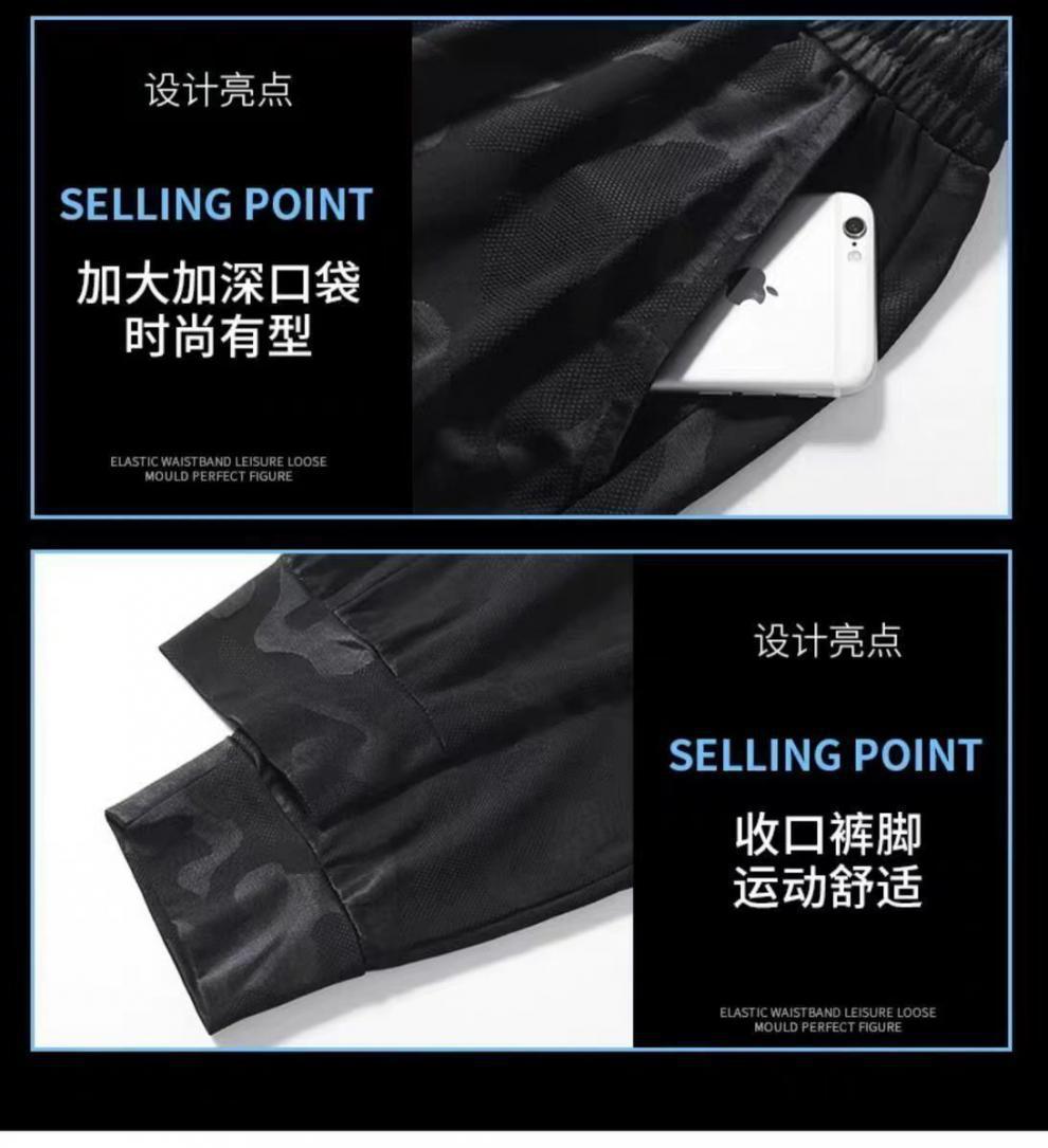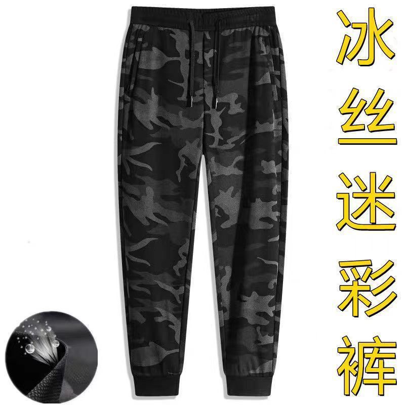 아이스 실크 바지 남자 위장 메쉬 통기성 스포츠 발목 바지 느슨한 올매치 탄성 빠른 건조 캐주얼 바지스토어 가기