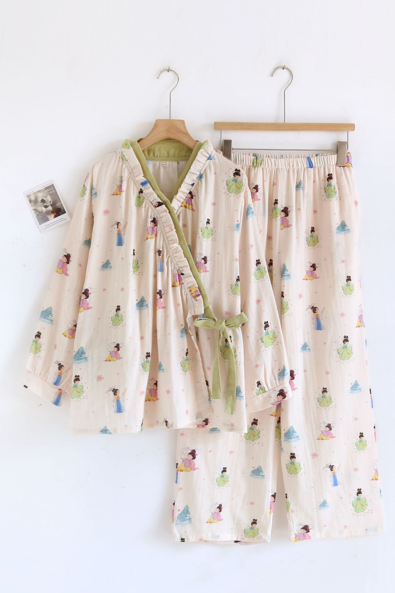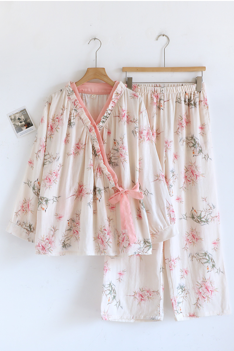 잠옷 여성의 봄과 여름 달콤한 인터넷 바지 스타일 홈 옷 신선한 슬란 캐주얼 파자마 긴 소매 바지 세트 홈 옷